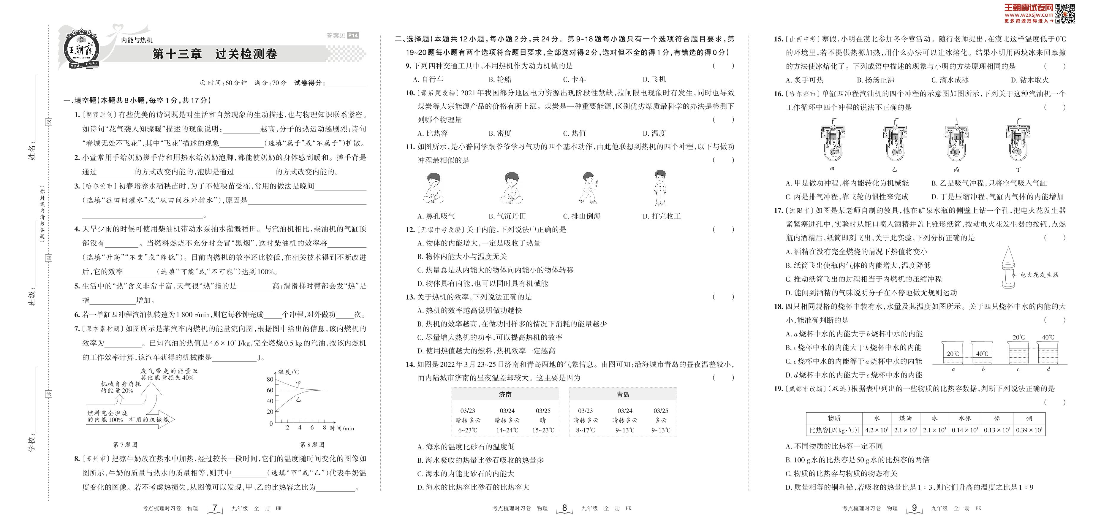 2023-2024学年九年级物理沪科版 第十三章 过关检测卷