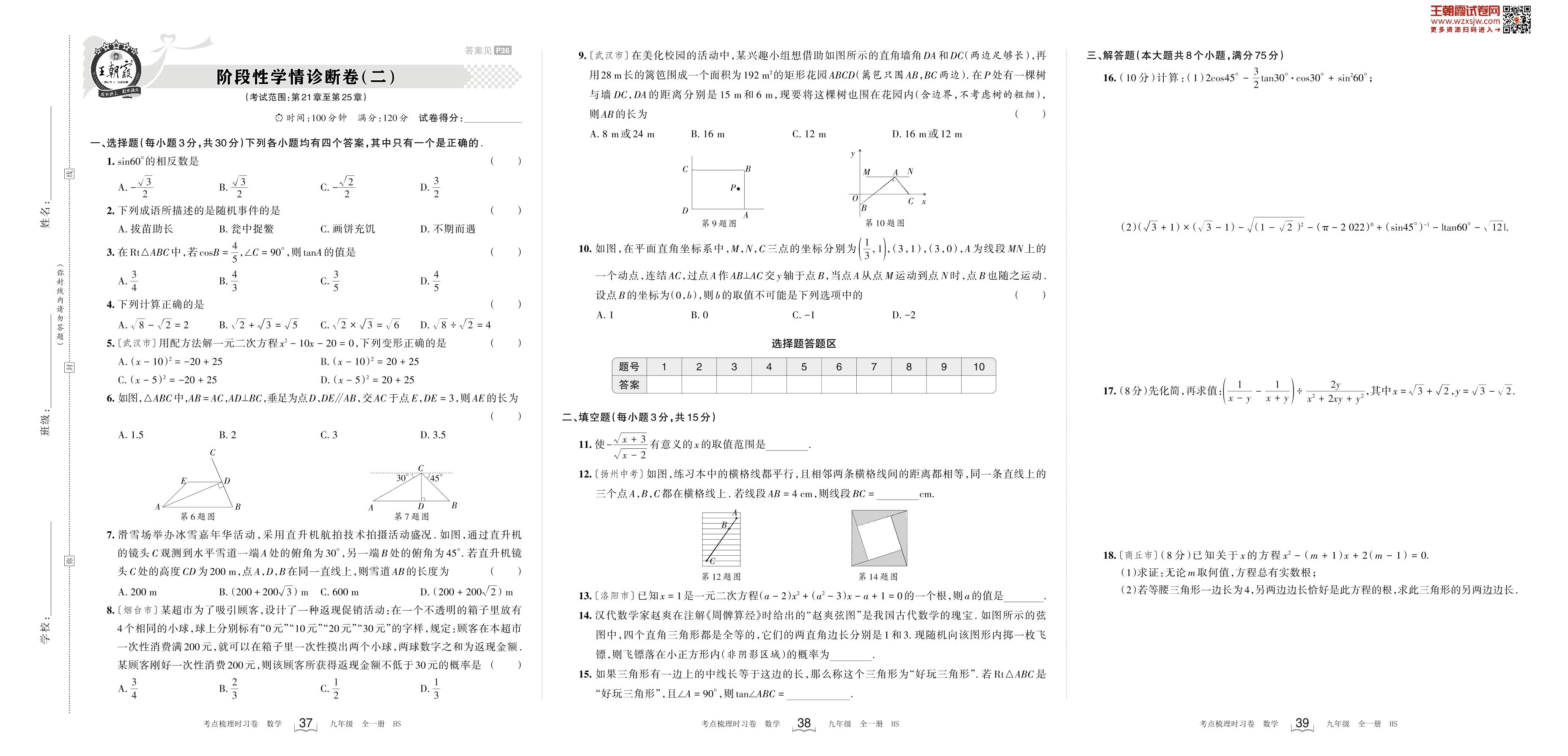 2023上册九年级数学华师版 阶段性学情诊断卷(二)