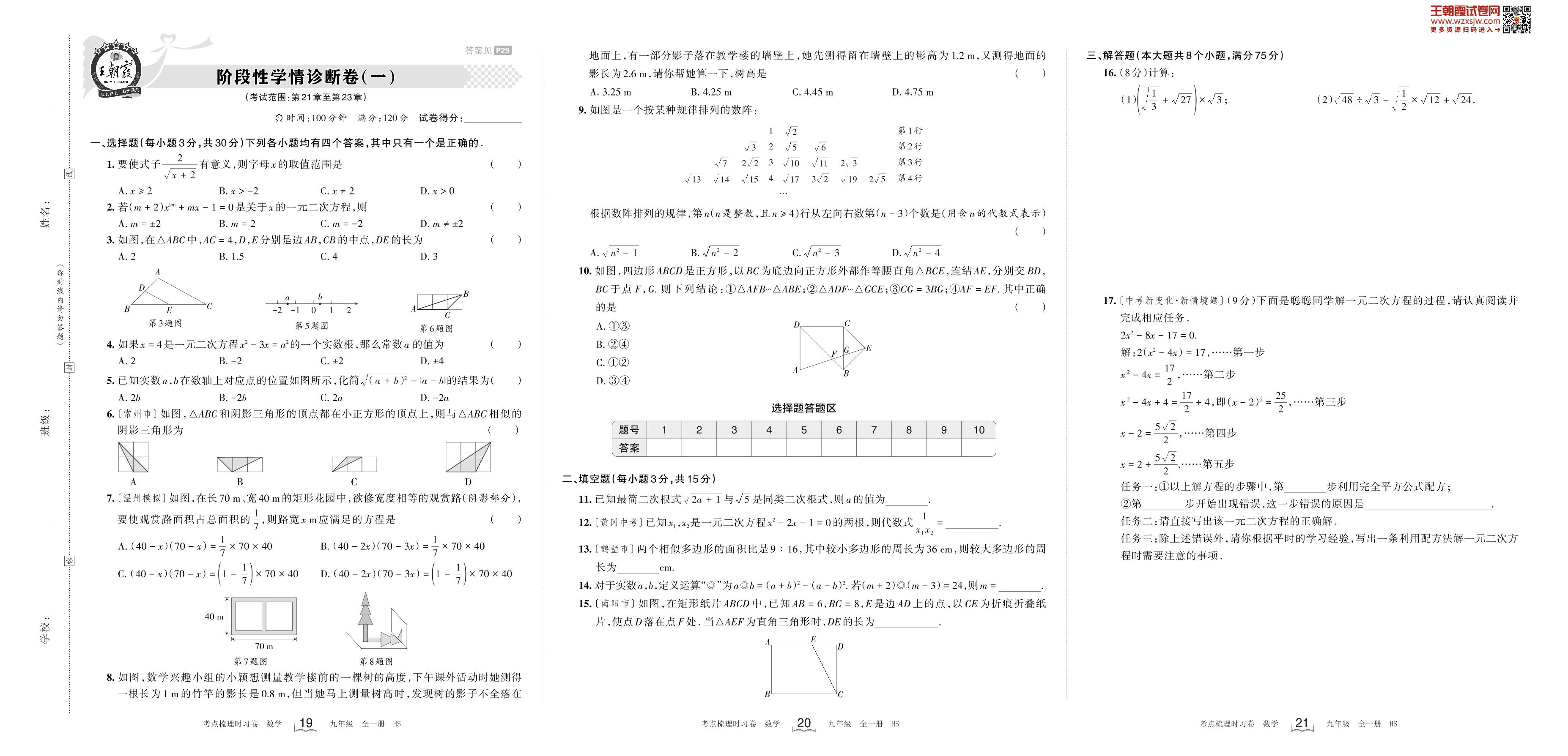 2023上册九年级数学华师版 阶段性学情诊断卷(一)