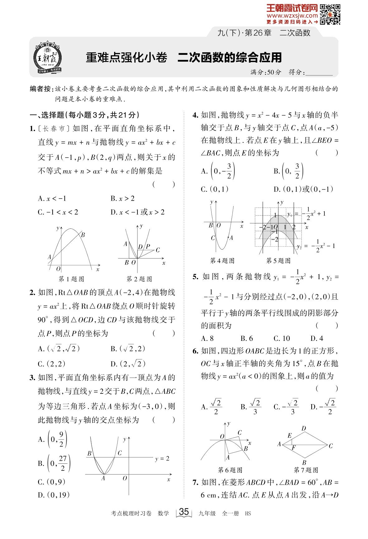 2023下册九年级数学华师版 第26章 重难点强化小卷 二次函数的综合应用