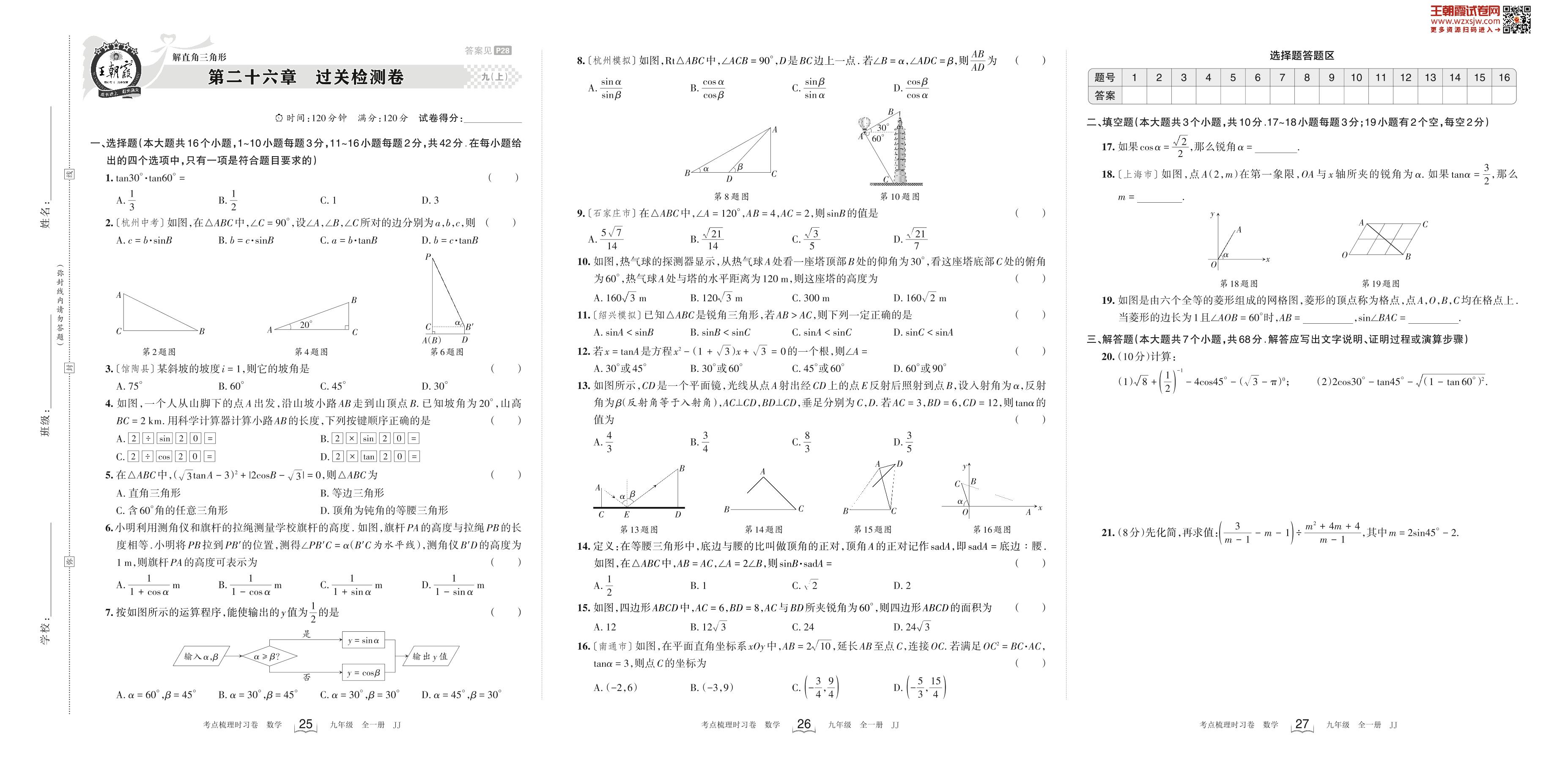 2023上册九年级数学冀教版 第二十六章 过关检测卷