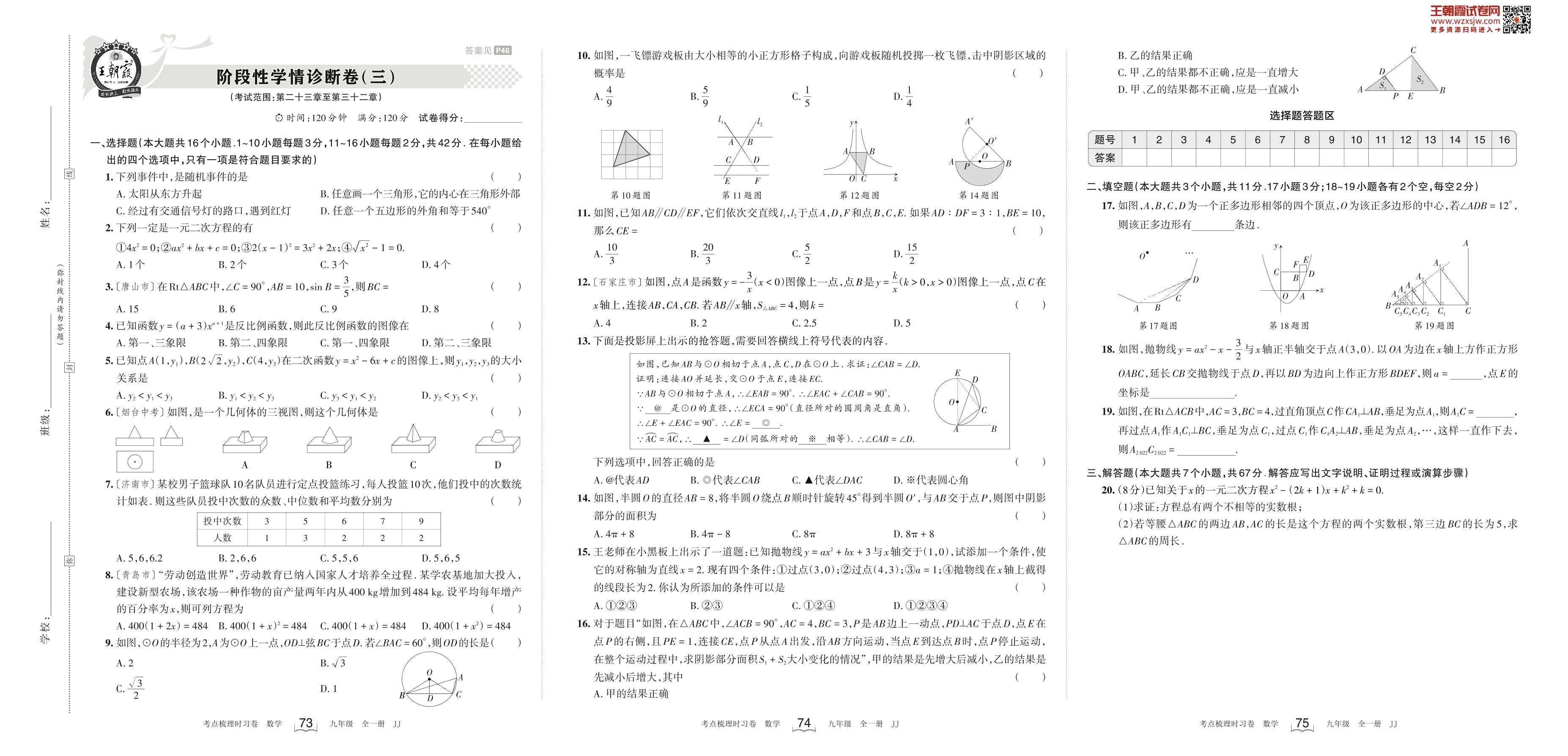 2024下册九年级数学冀教版 阶段性学情诊断卷(三)