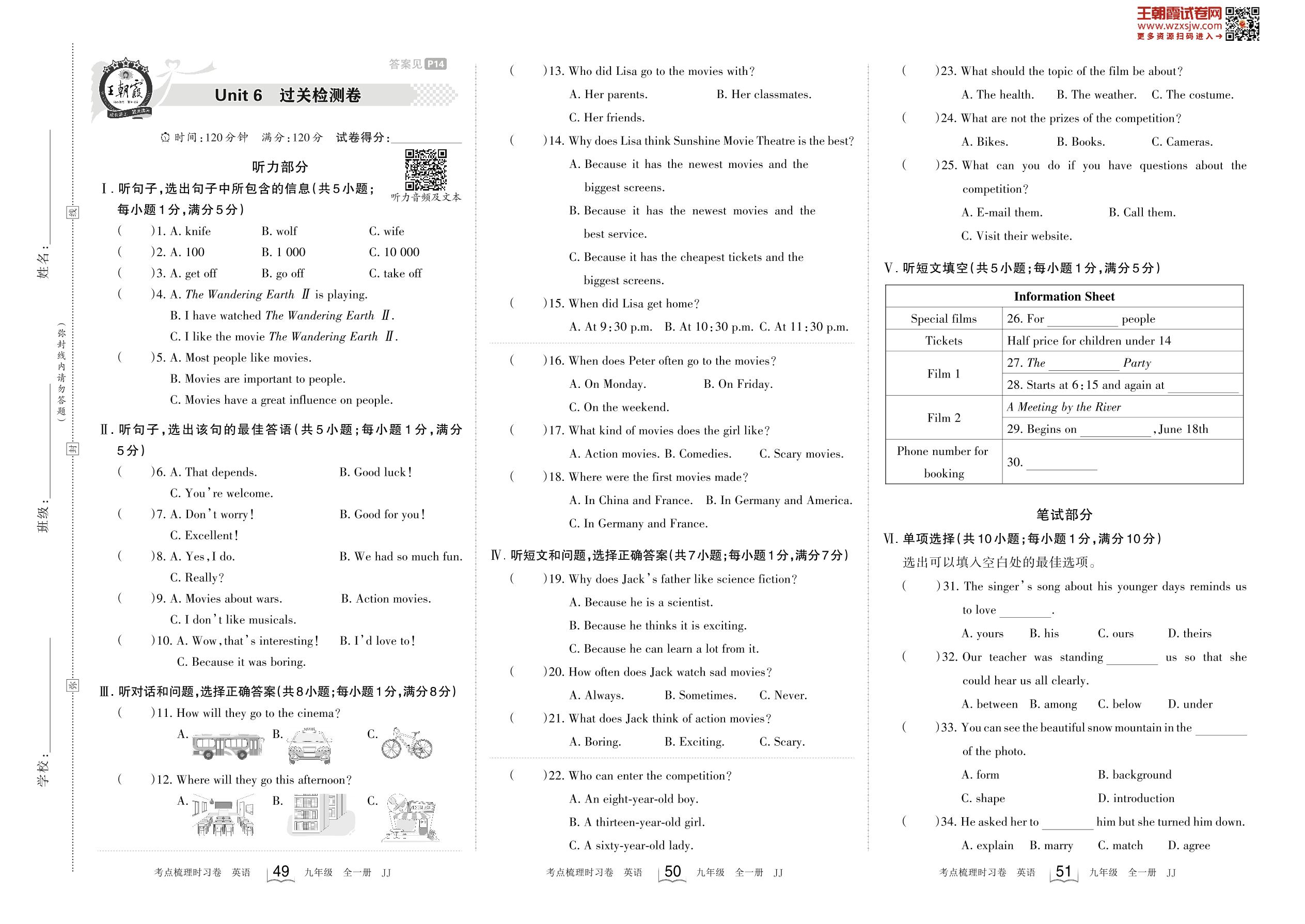 2023-2024学年九年级英语冀教版 Unit 6 过关检测卷