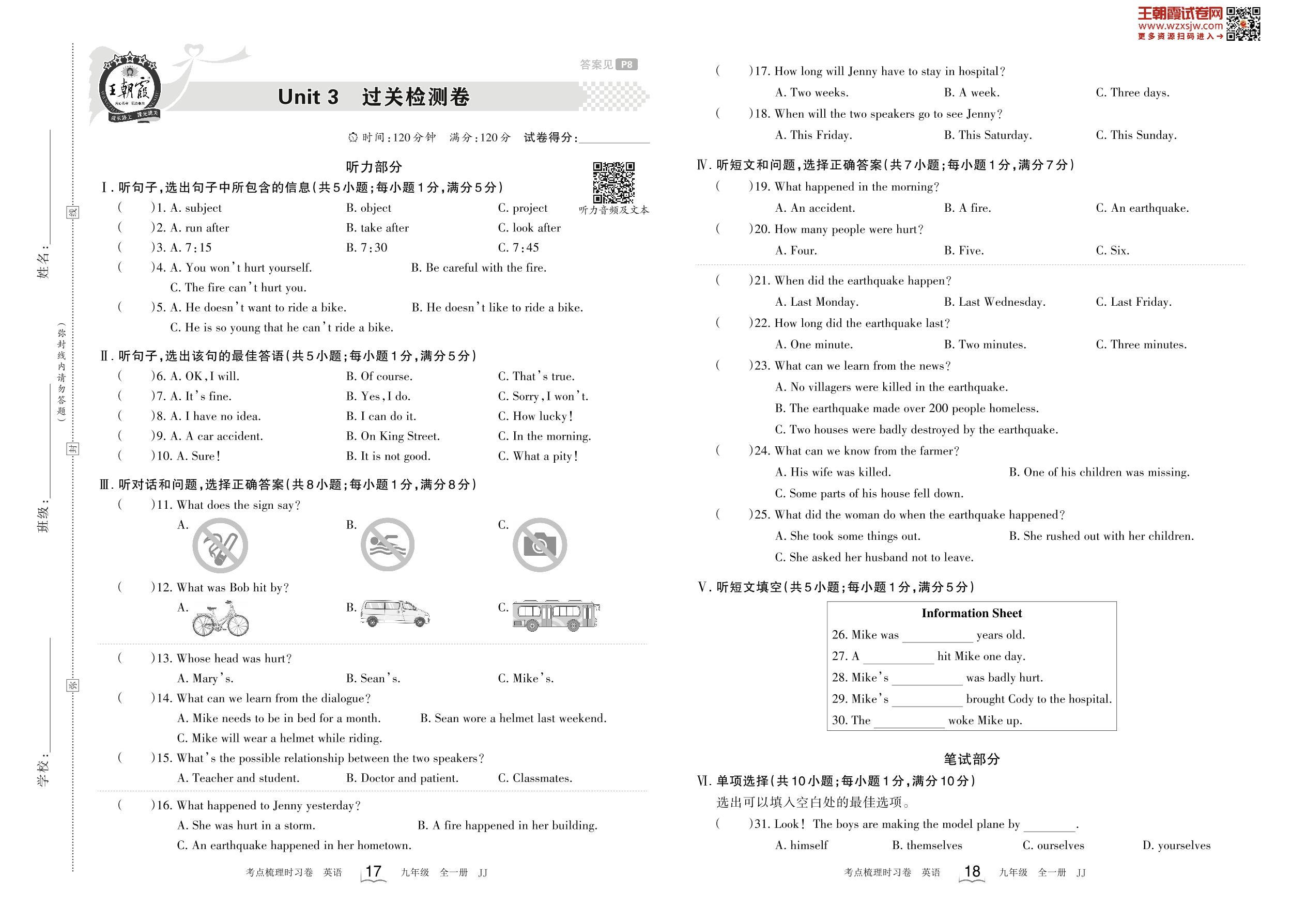 2023-2024学年九年级英语冀教版 Unit 3 过关检测卷