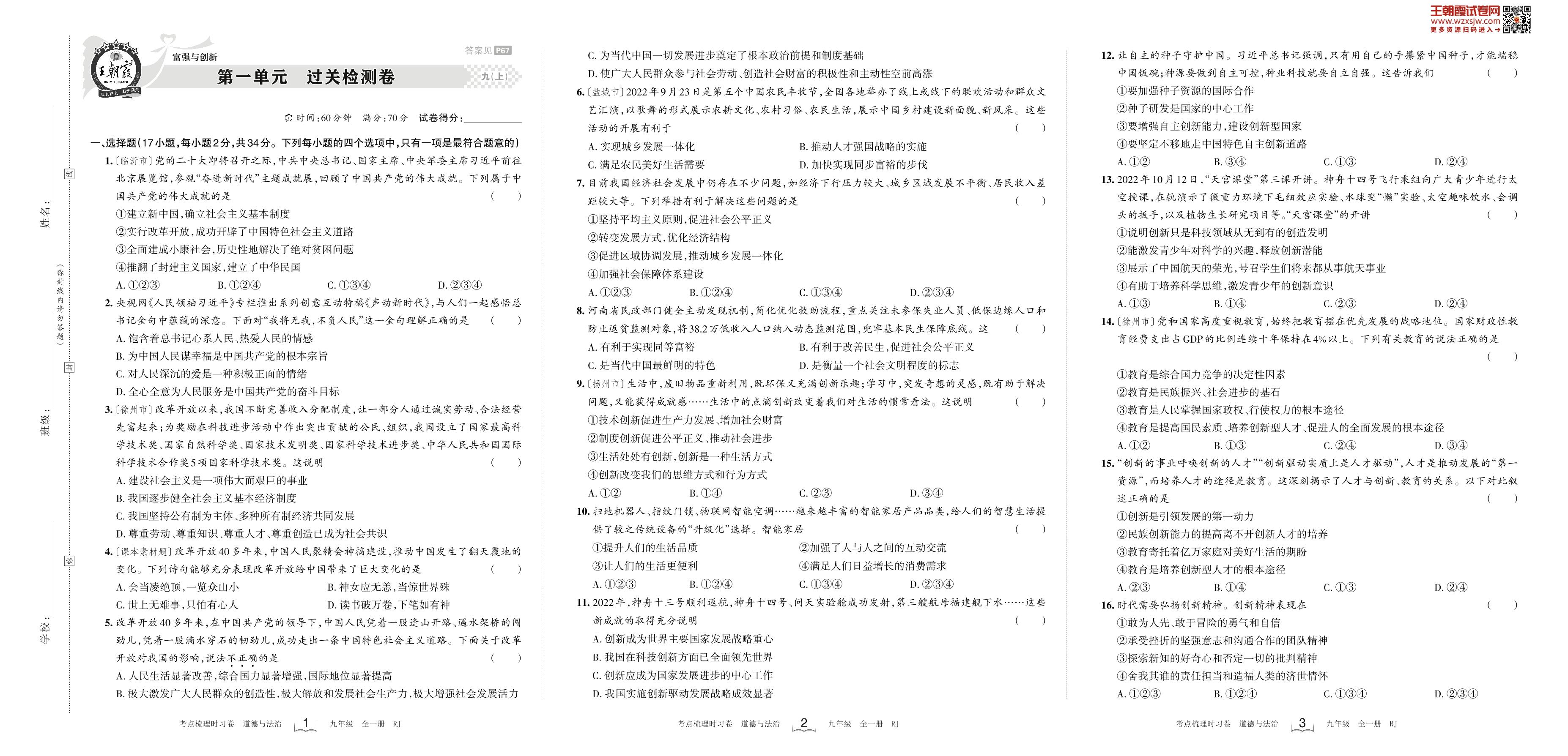 2023上册九年级道德与法治人教版 第一单元 过关检测卷(2月版)