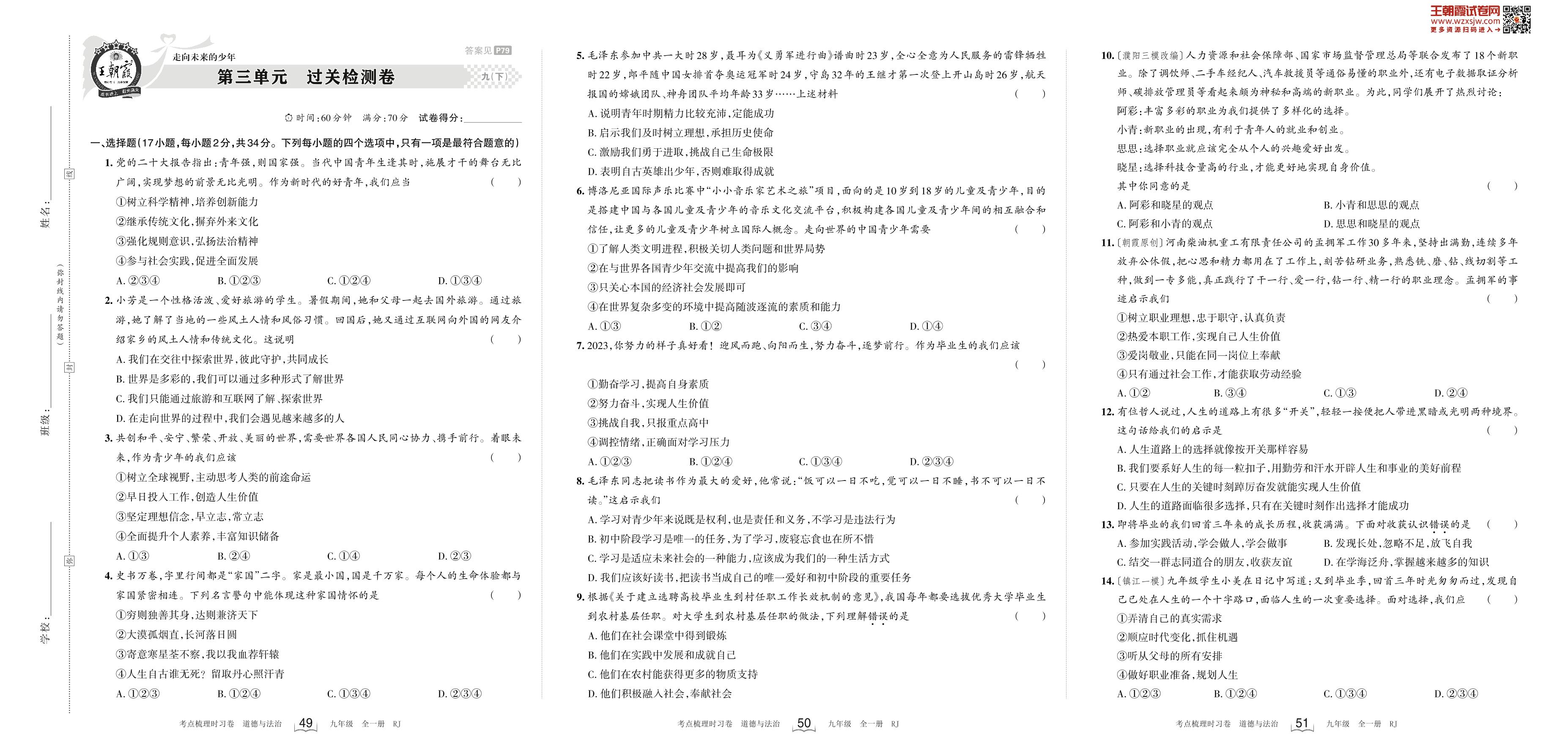 2024下册九年级道德与法治人教版 第三单元 过关检测卷(2月版)