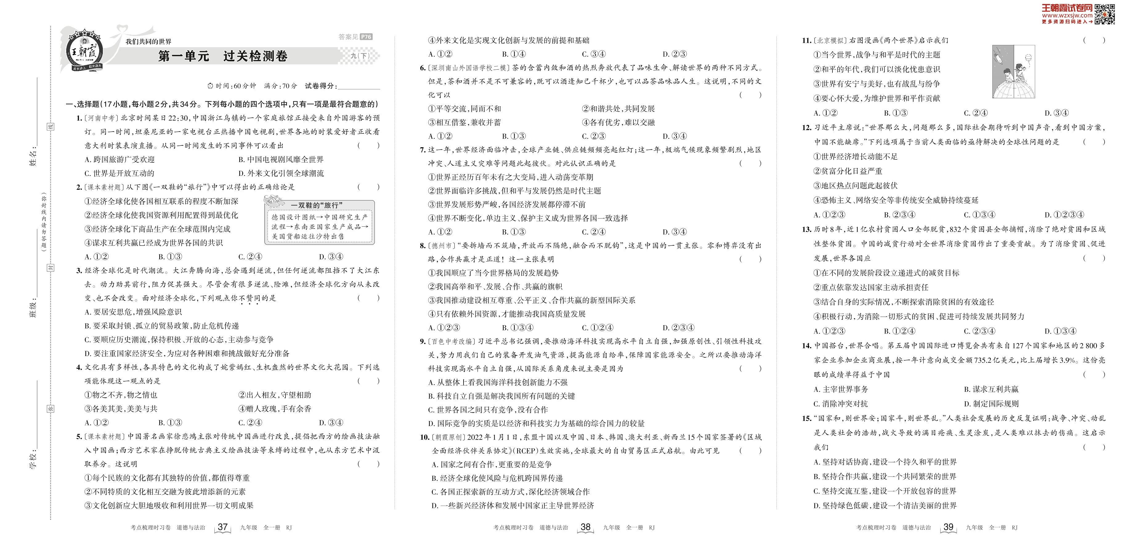 九年级道德与法治人教版下册单元卷