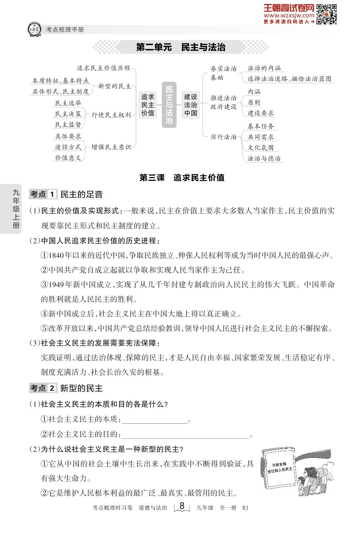 2023上册九年级道德与法治人教版 考点梳理手册——第二单元 民主与法治(2月版)