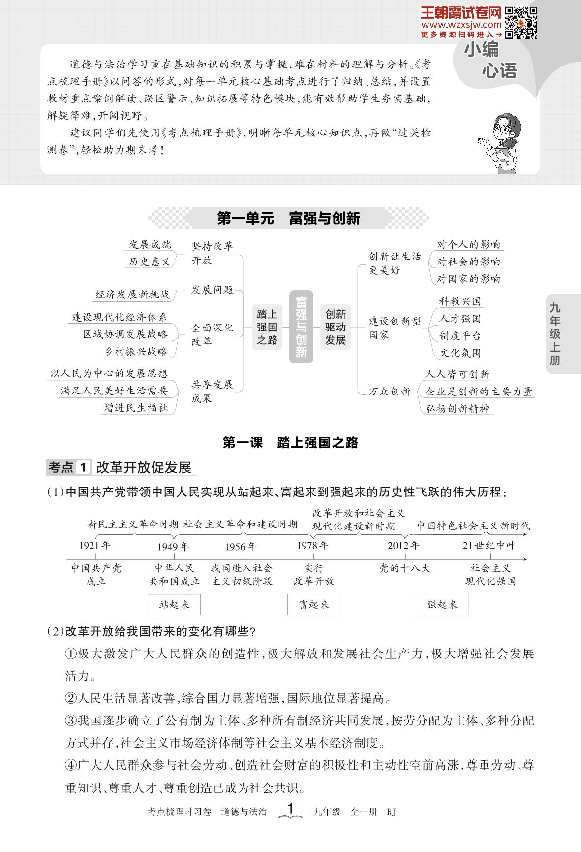 2023上册九年级道德与法治人教版 考点梳理手册——第一单元 富强与创新(2月版)