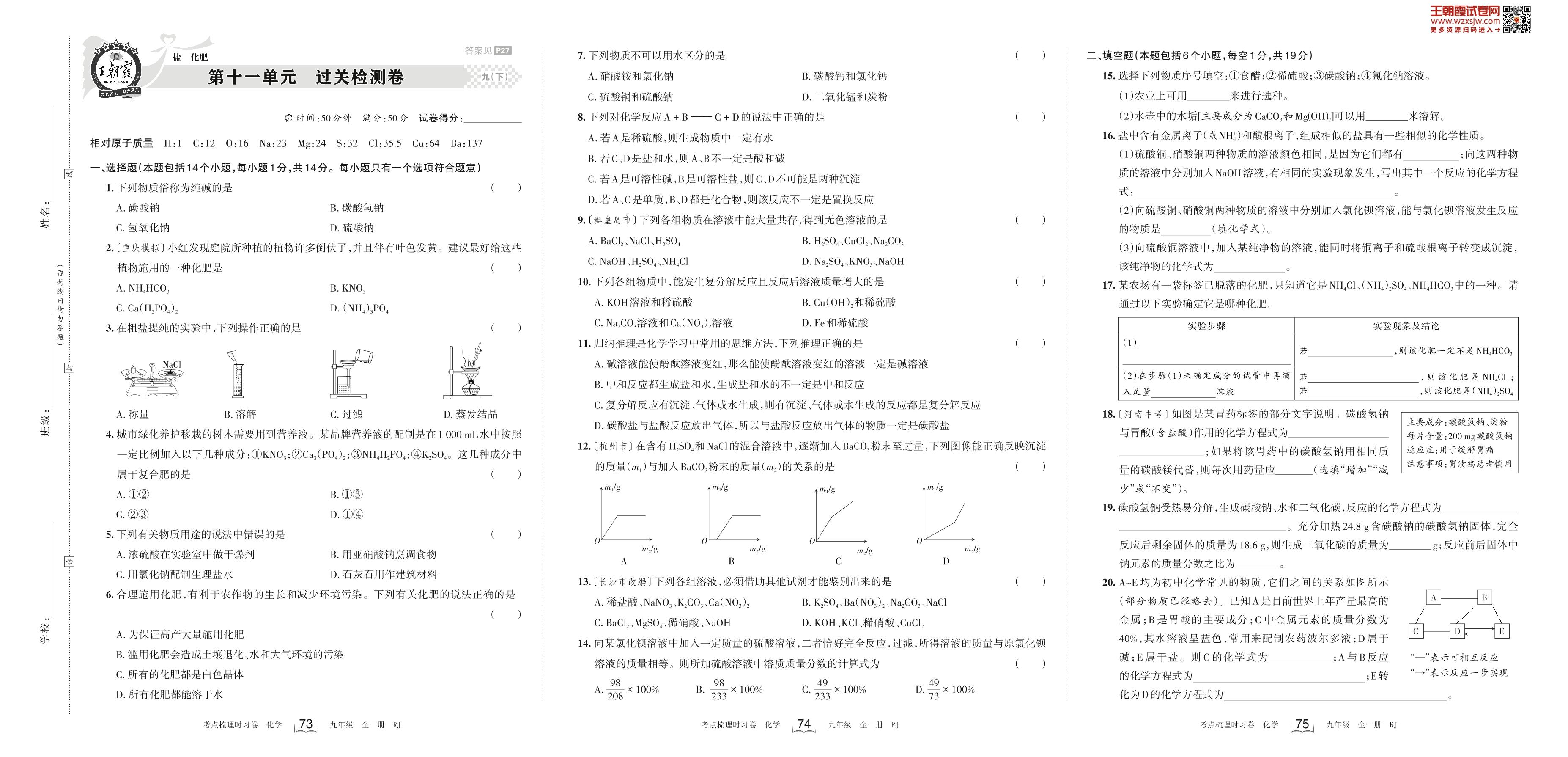 2024下册九年级化学人教版 第十一单元 过关检测卷