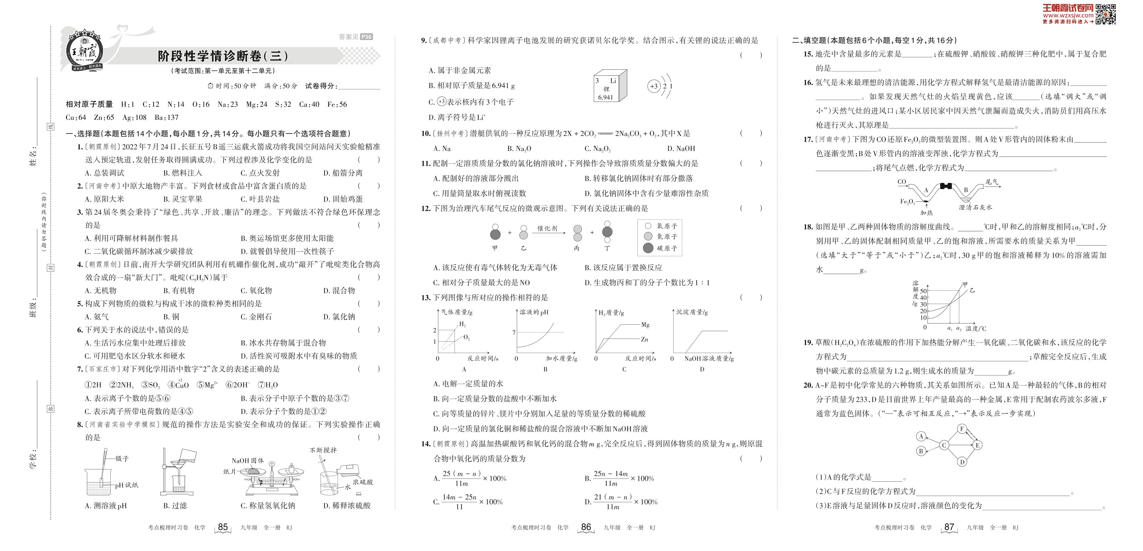 2024下册九年级化学人教版 阶段性学情诊断卷(三)