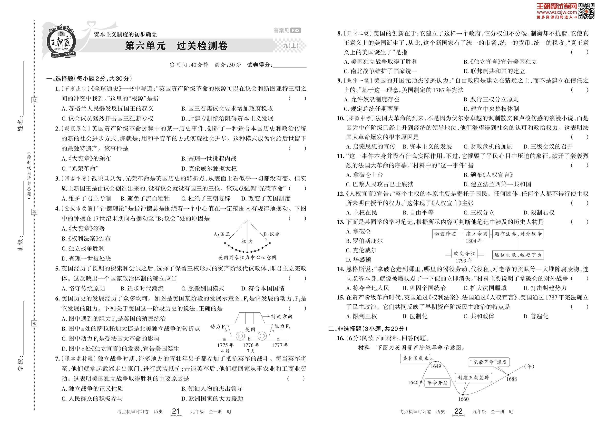 2023上册九年级历史人教版 第六单元 过关检测卷