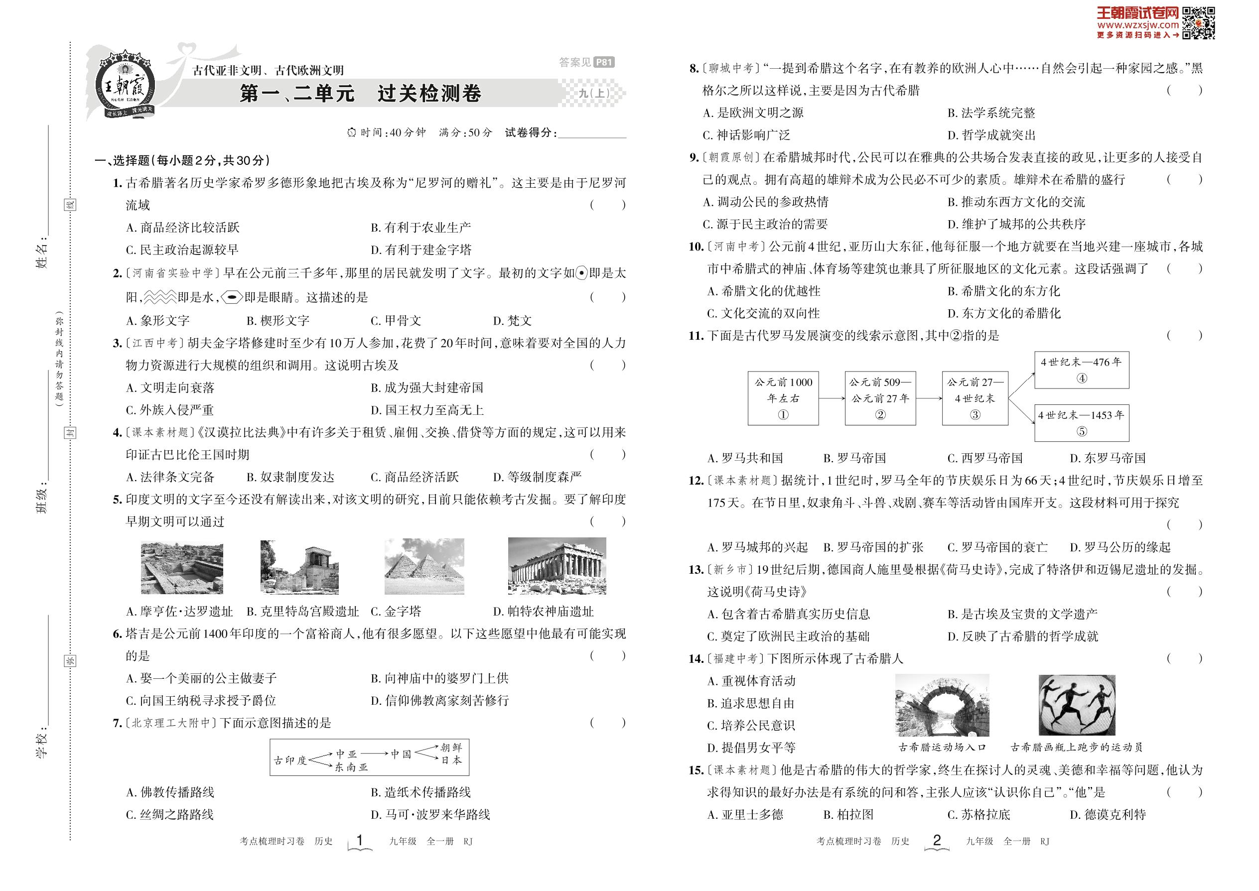 2023上册九年级历史人教版 第一、二单元 过关检测卷