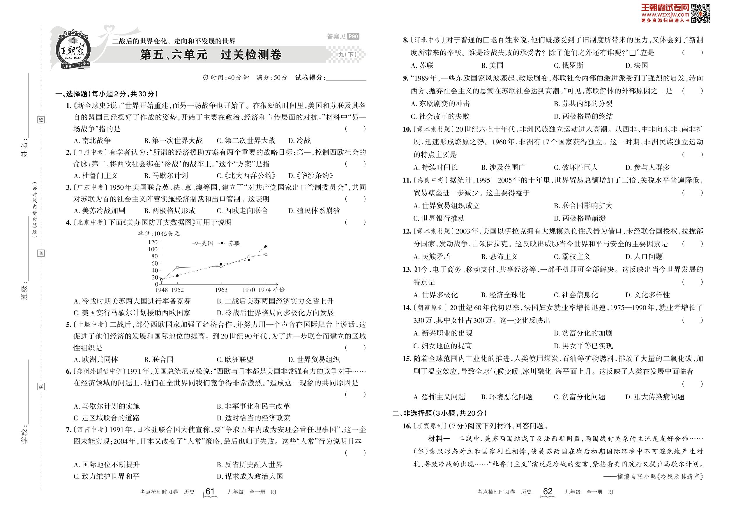2024下册九年级历史人教版 第五、六单元 过关检测卷