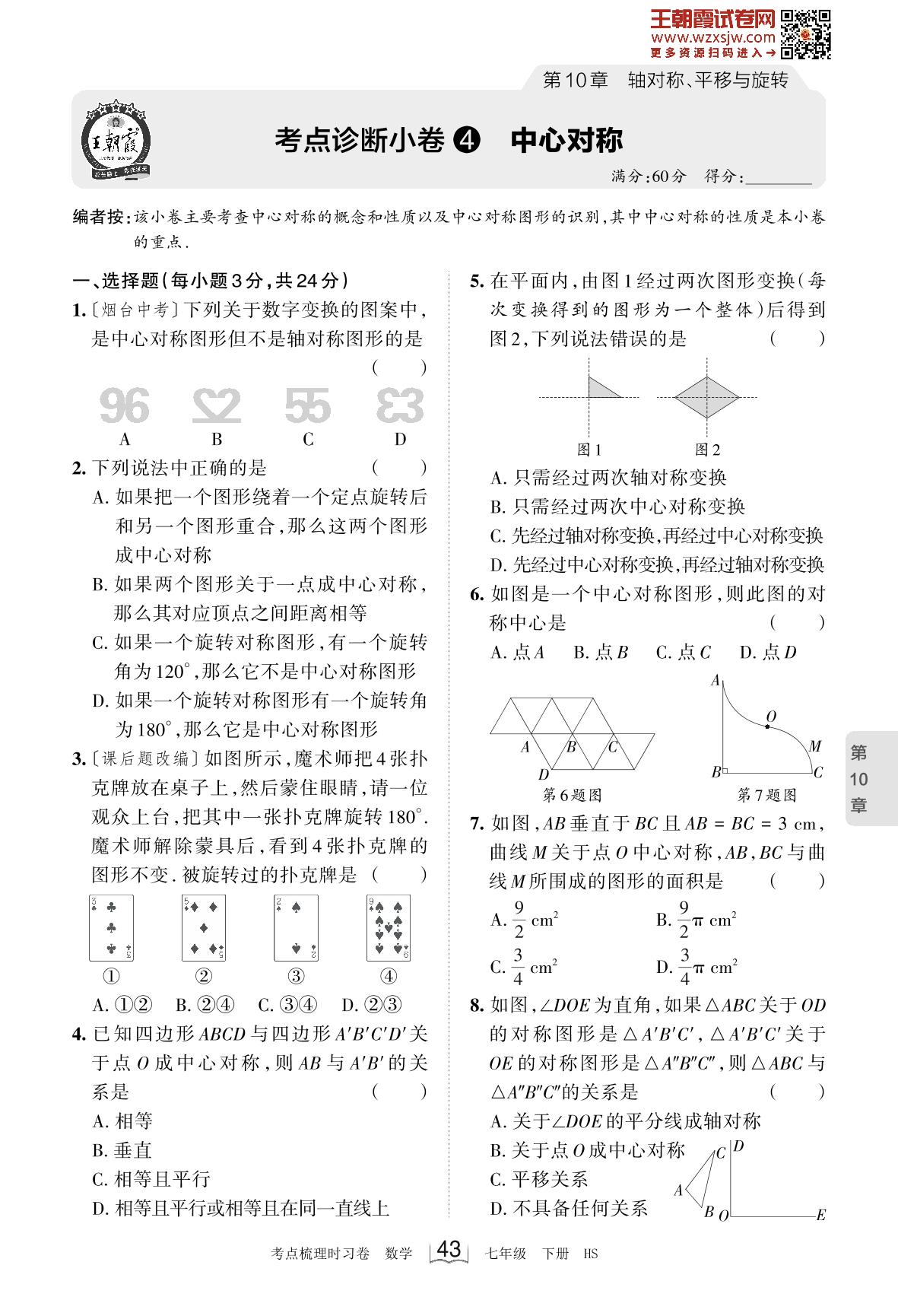 2023下册七年级数学华师版 第10章 考点诊断小卷4 中心对称