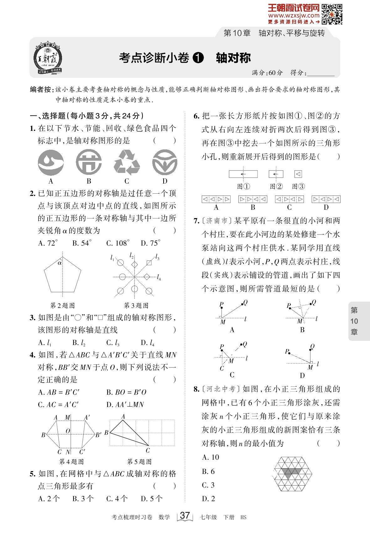 2023下册七年级数学华师版 第10章 考点诊断小卷1 轴对称