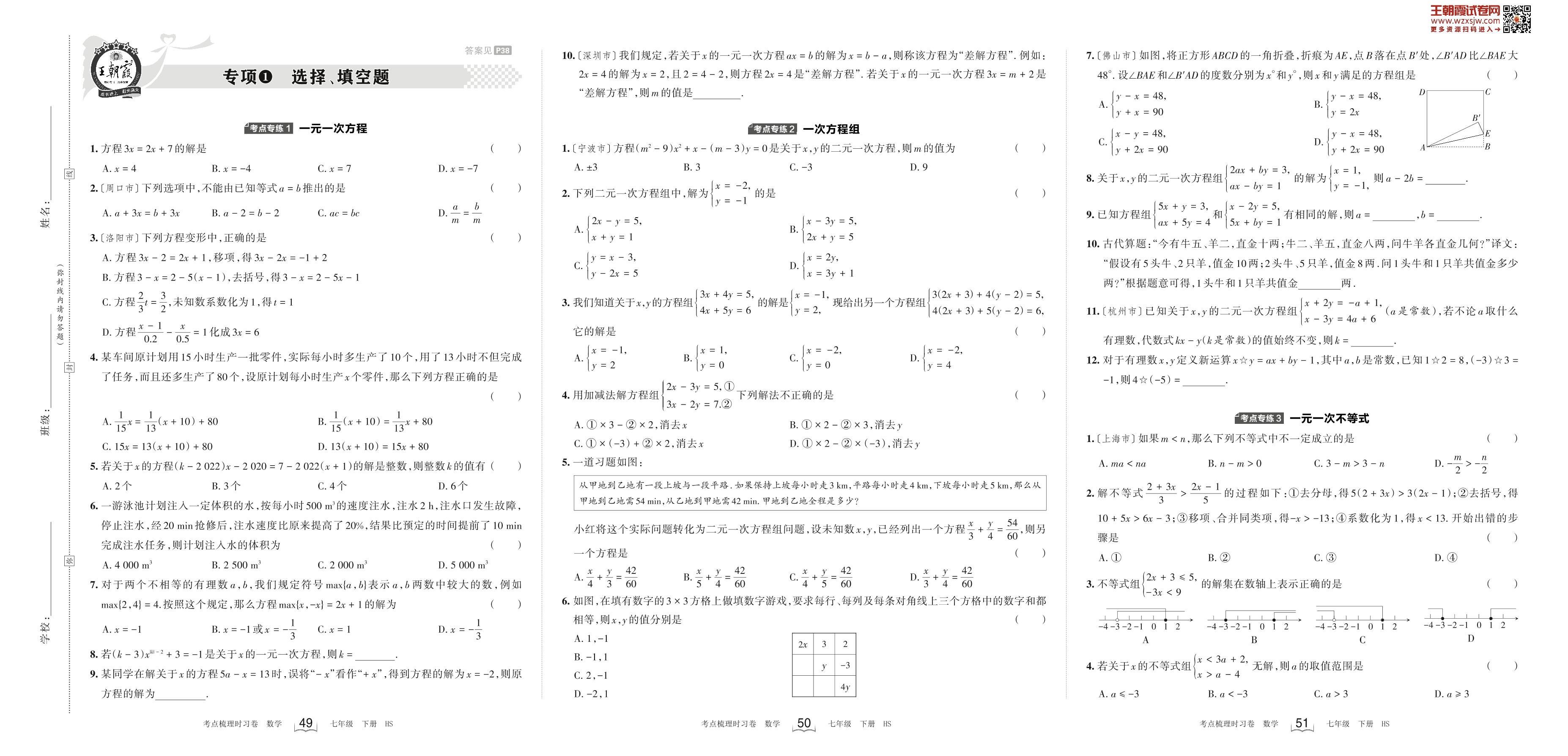 七年级数学华师版下册专项卷