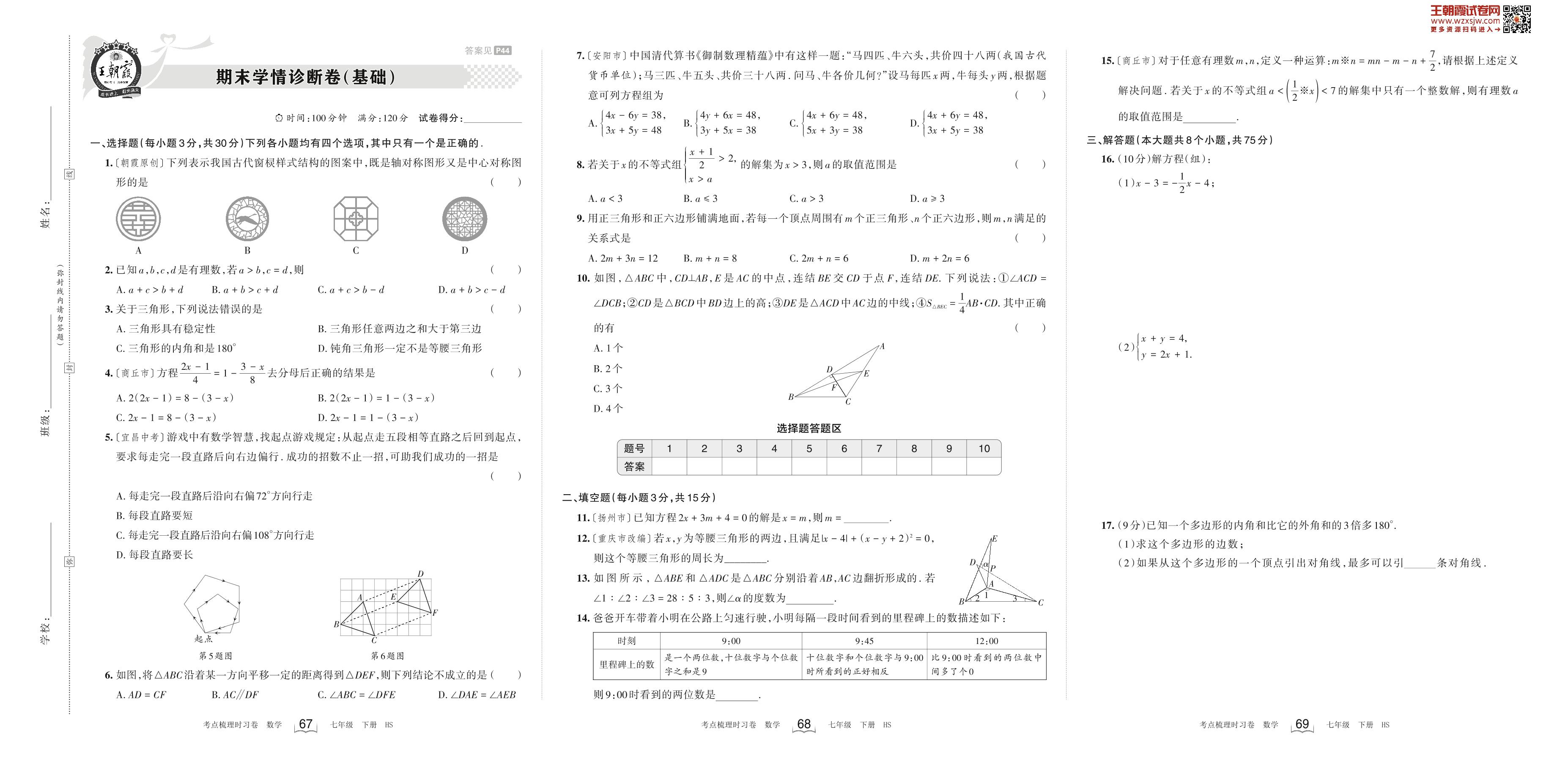 2023下册七年级数学华师版 期末学情诊断卷(基础)