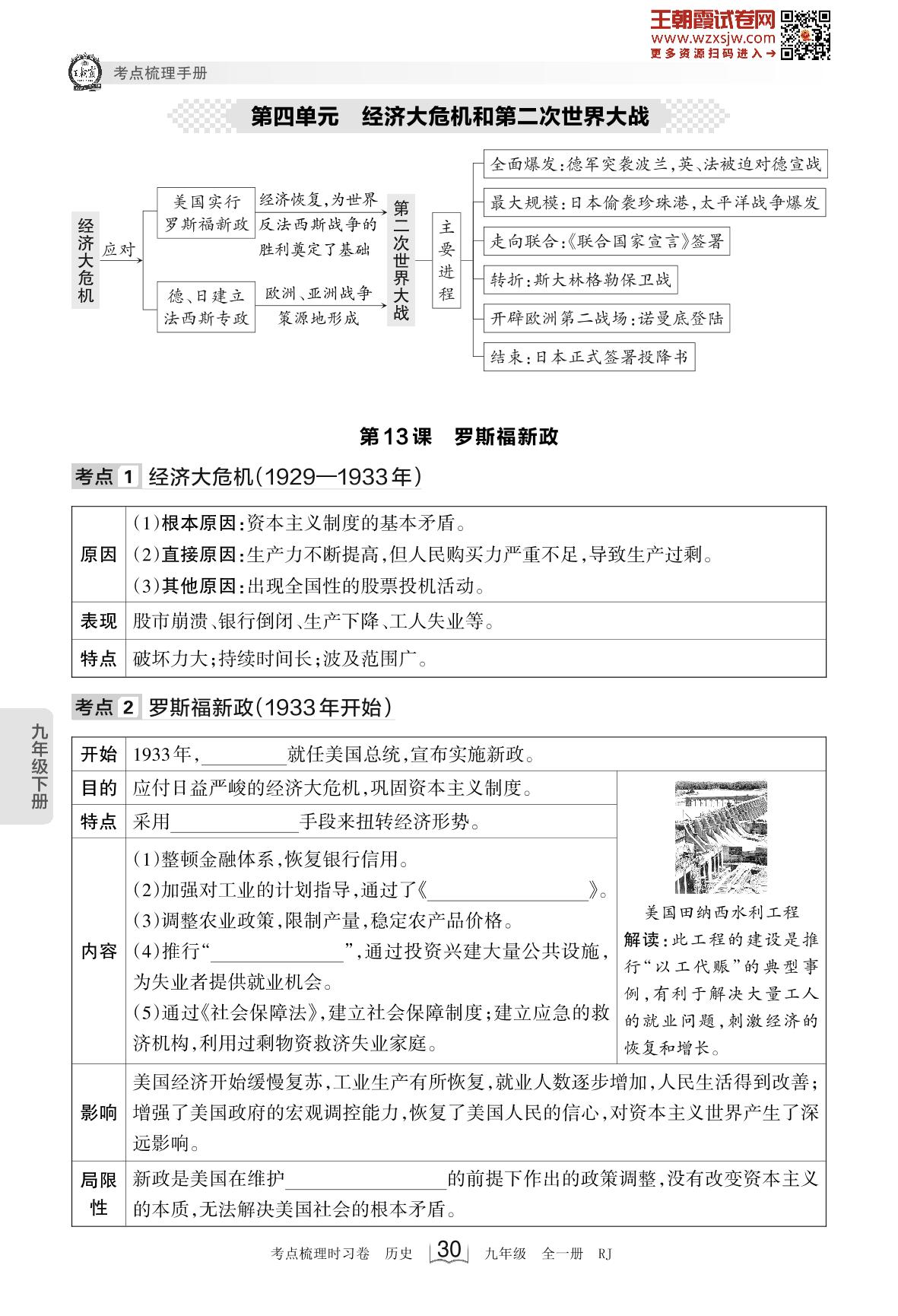 2024下册九年级历史人教版 考点梳理手册——第四单元 经济大危机和第二次世界大战