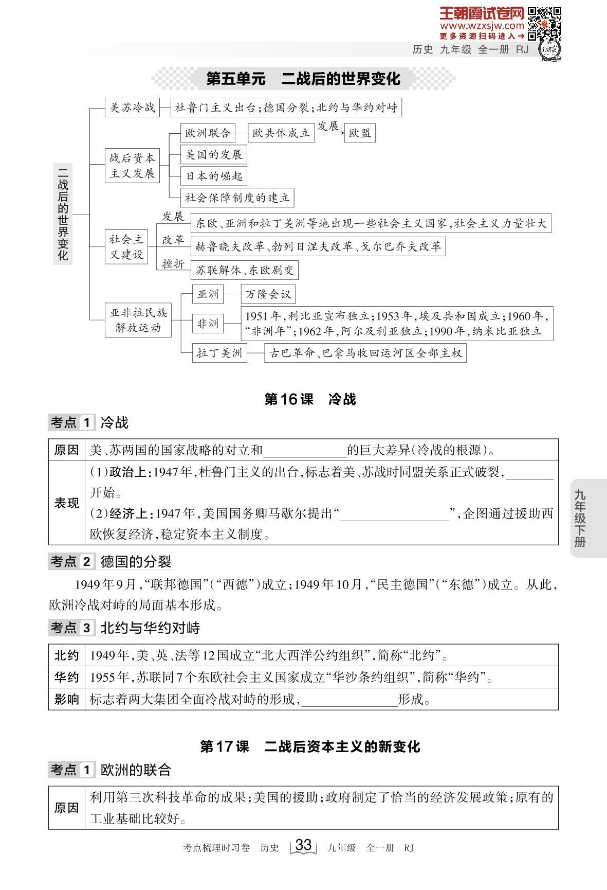 2024下册九年级历史人教版 考点梳理手册——第五单元 二战后的世界变化