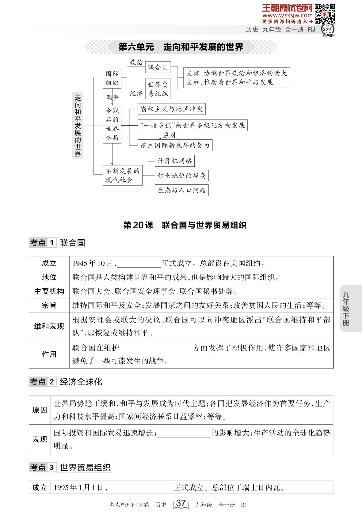 2024下册九年级历史人教版 考点梳理手册——第六单元 走向和平发展的世界