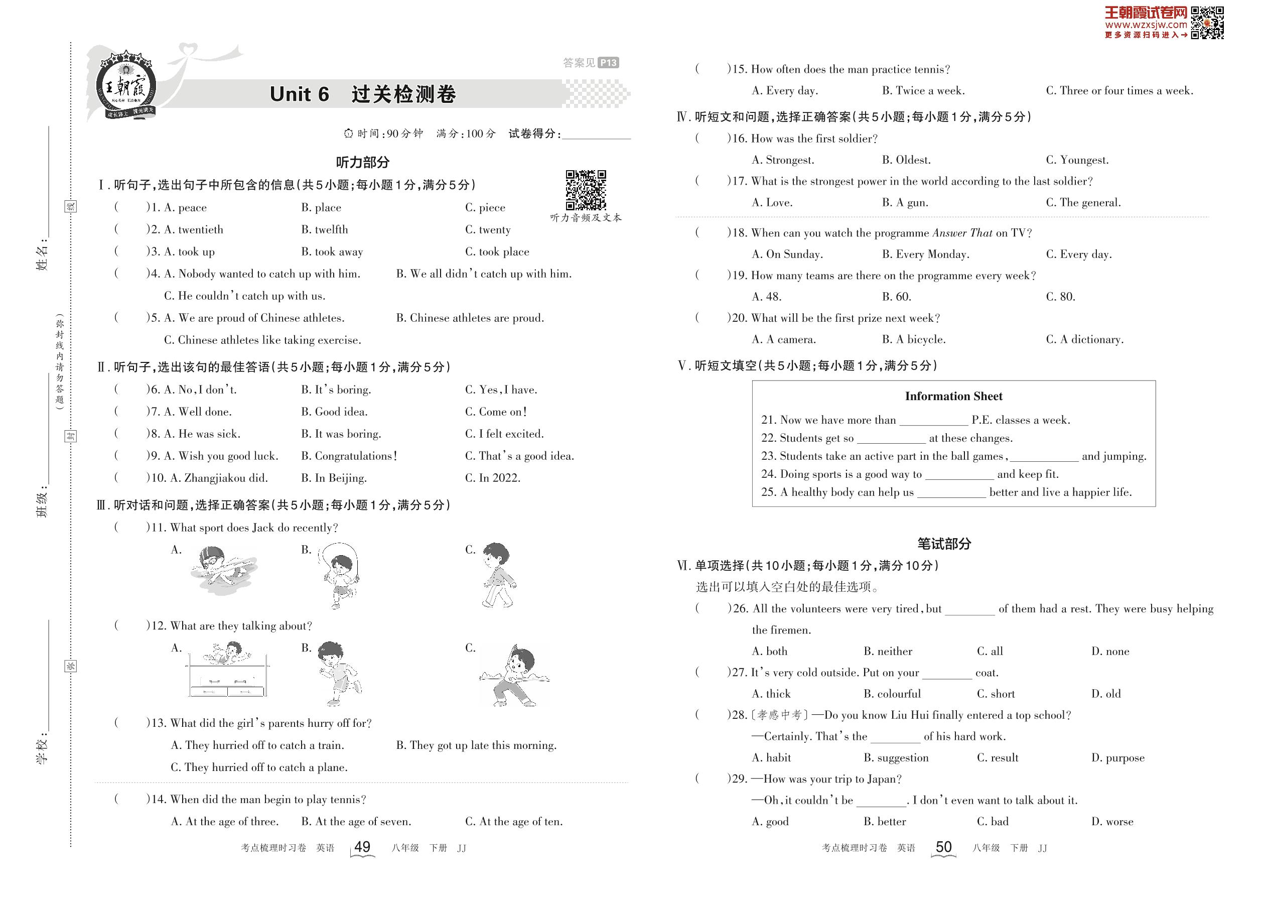 2023下册八年级英语冀教版 Unit 6 过关检测卷