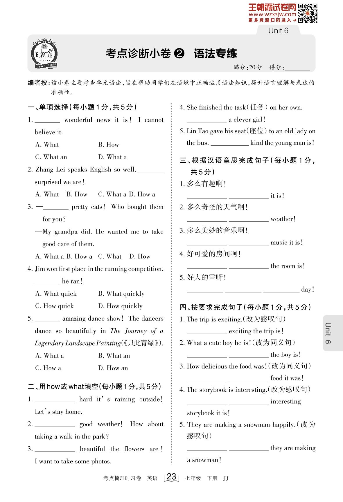 2023下册七年级英语冀教版 Unit 6 考点诊断小卷2 语法专练