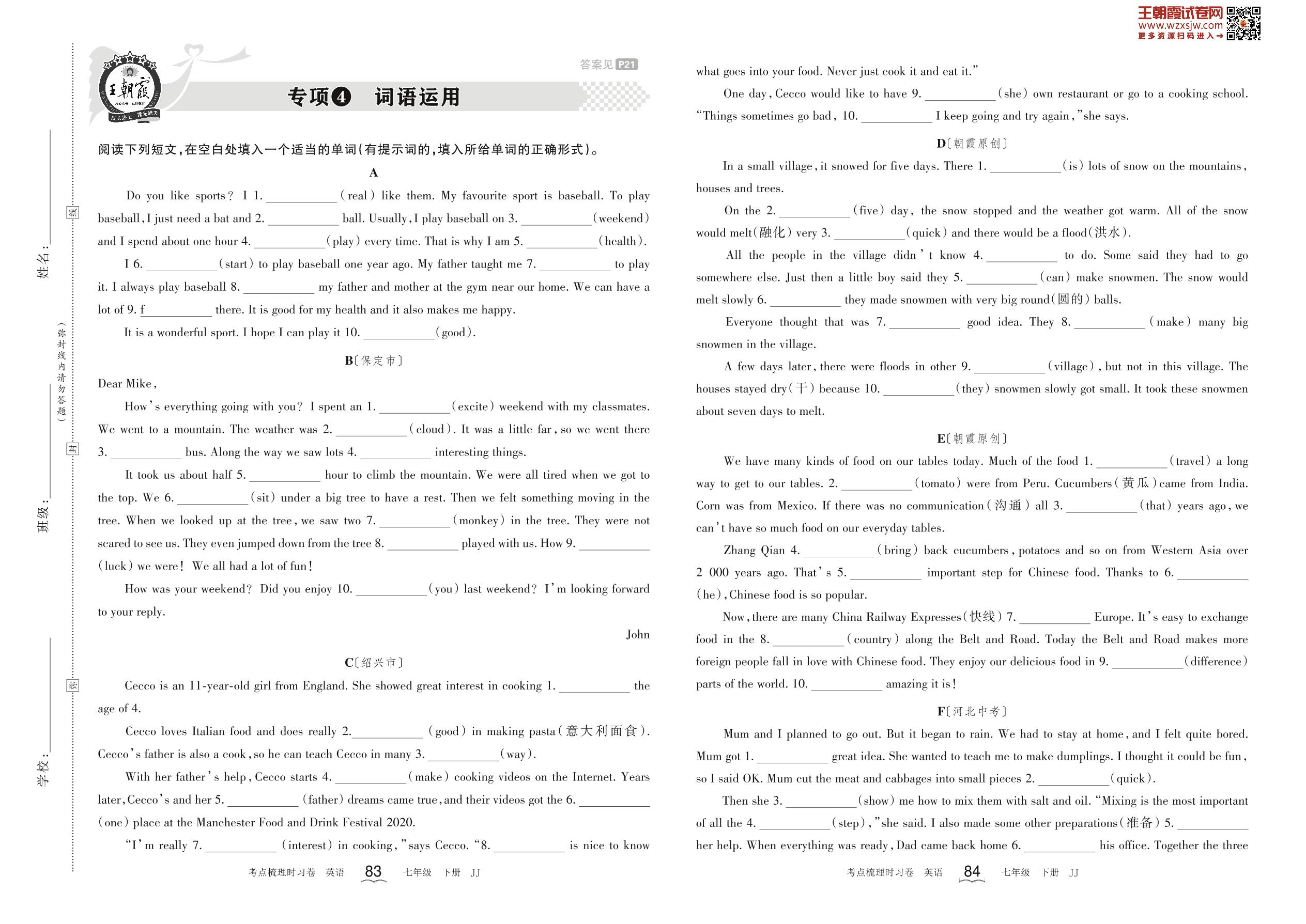 七年级英语冀教版下册专项卷