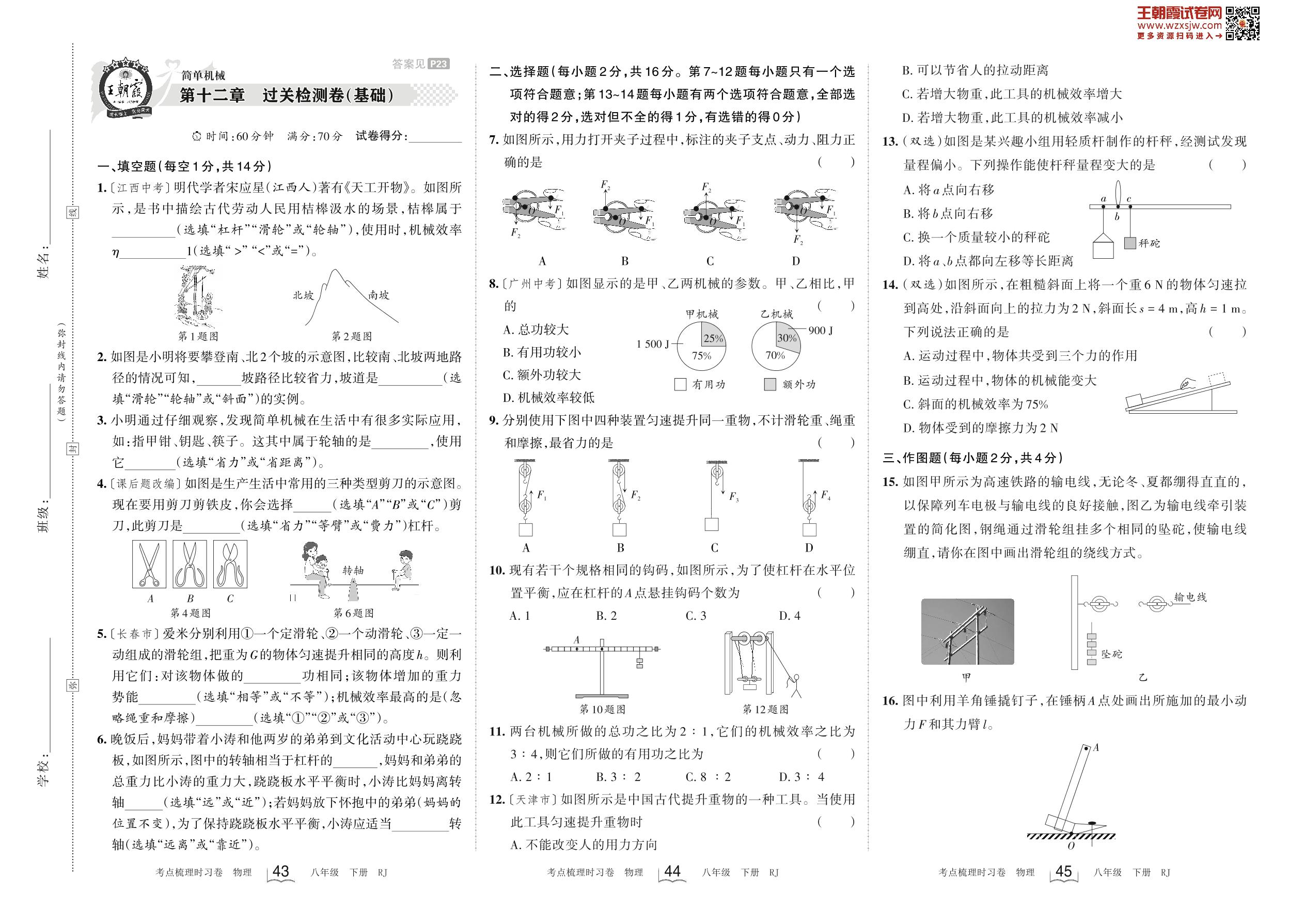 2023下册八年级物理人教版 第十二章 过关检测卷(基础)