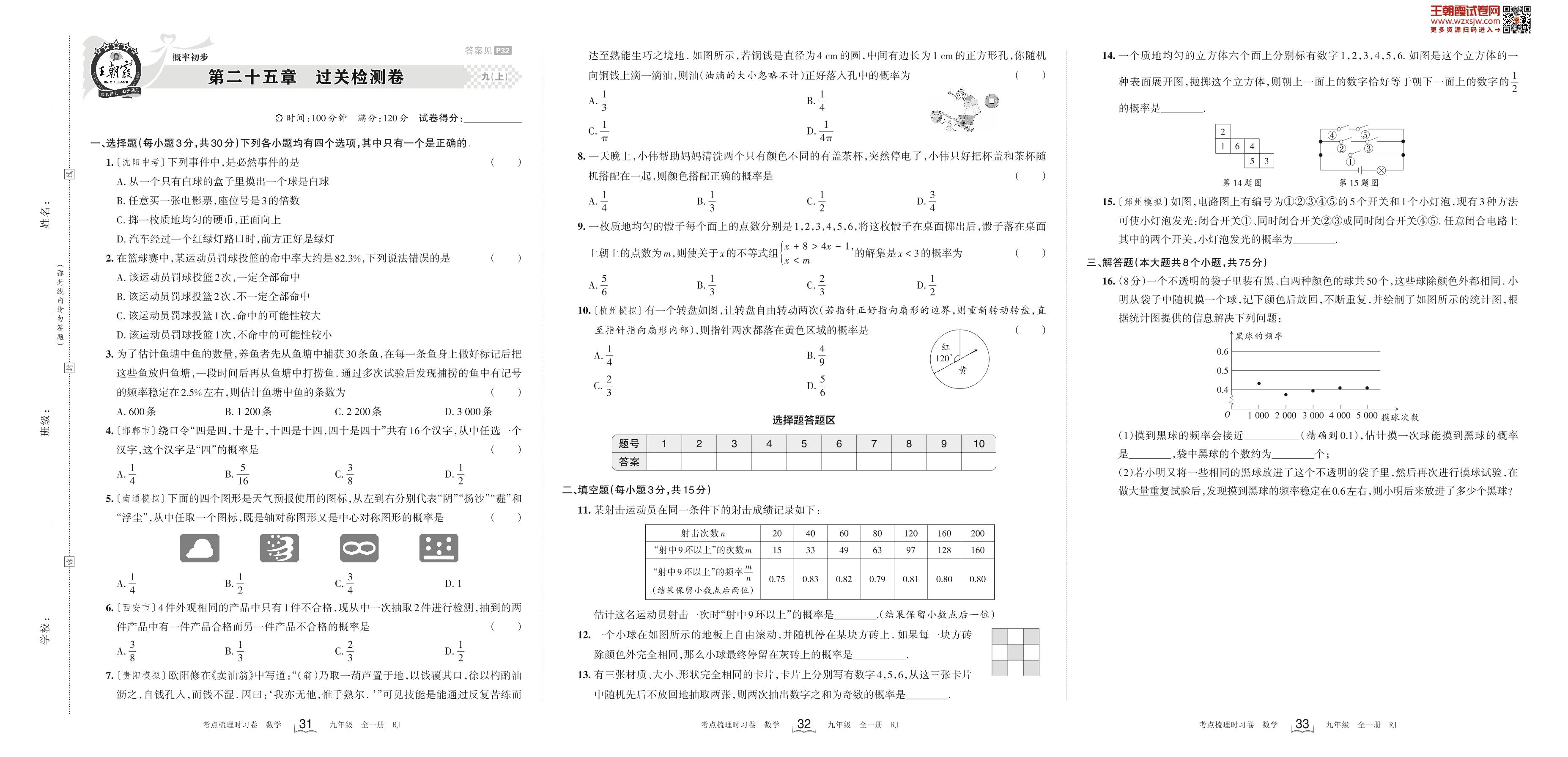 2023上册九年级数学人教版 第二十五章 过关检测卷