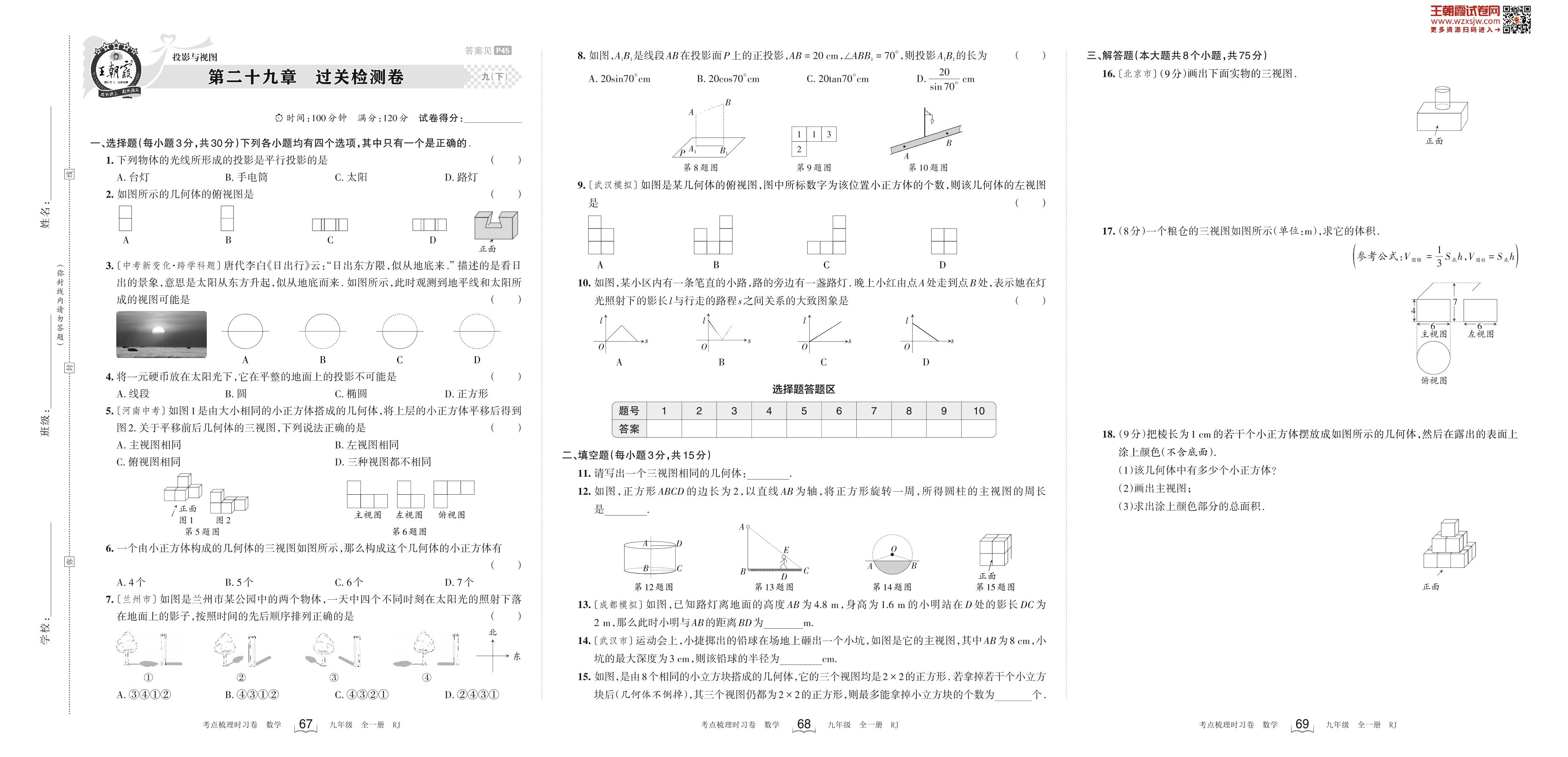 2024下册九年级数学人教版 第二十九章 过关检测卷