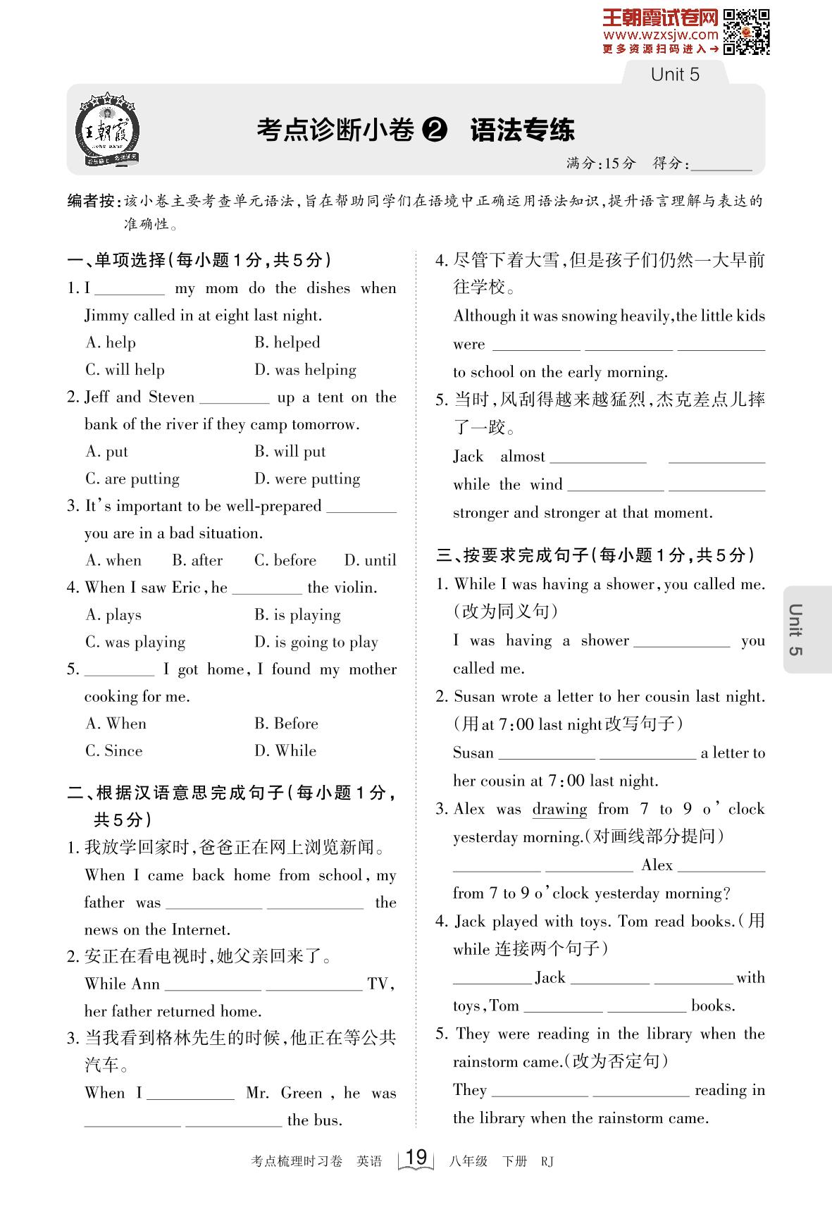 2023下册八年级英语人教版 Unit 5 考点诊断小卷2 语法专练_R230220090448830