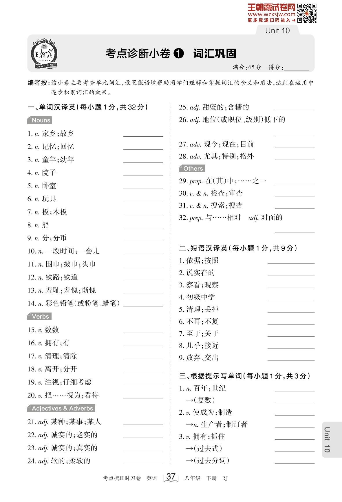 2023下册八年级英语人教版 Unit 10 考点诊断小卷1 词汇巩固_R230220090449818