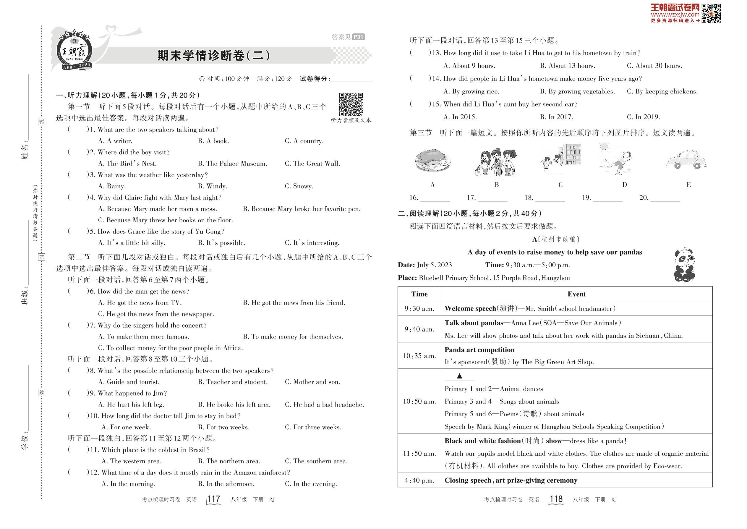 2023下册八年级英语人教版 期末学情诊断卷(二)_R230220090453246