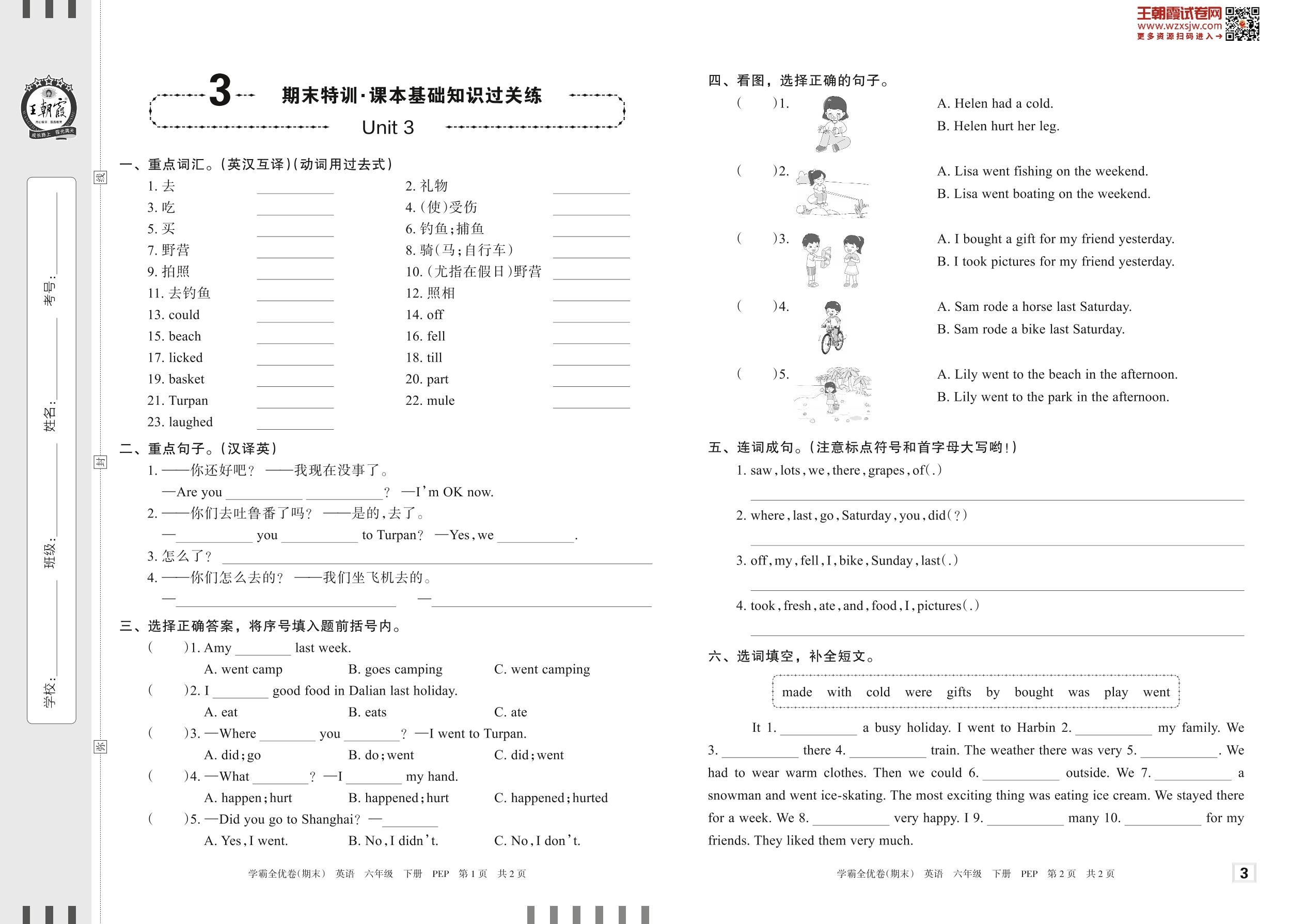 2023下册六年级英语人教PEP版 3 期末特训·课本基础知识过关练——Unit 3