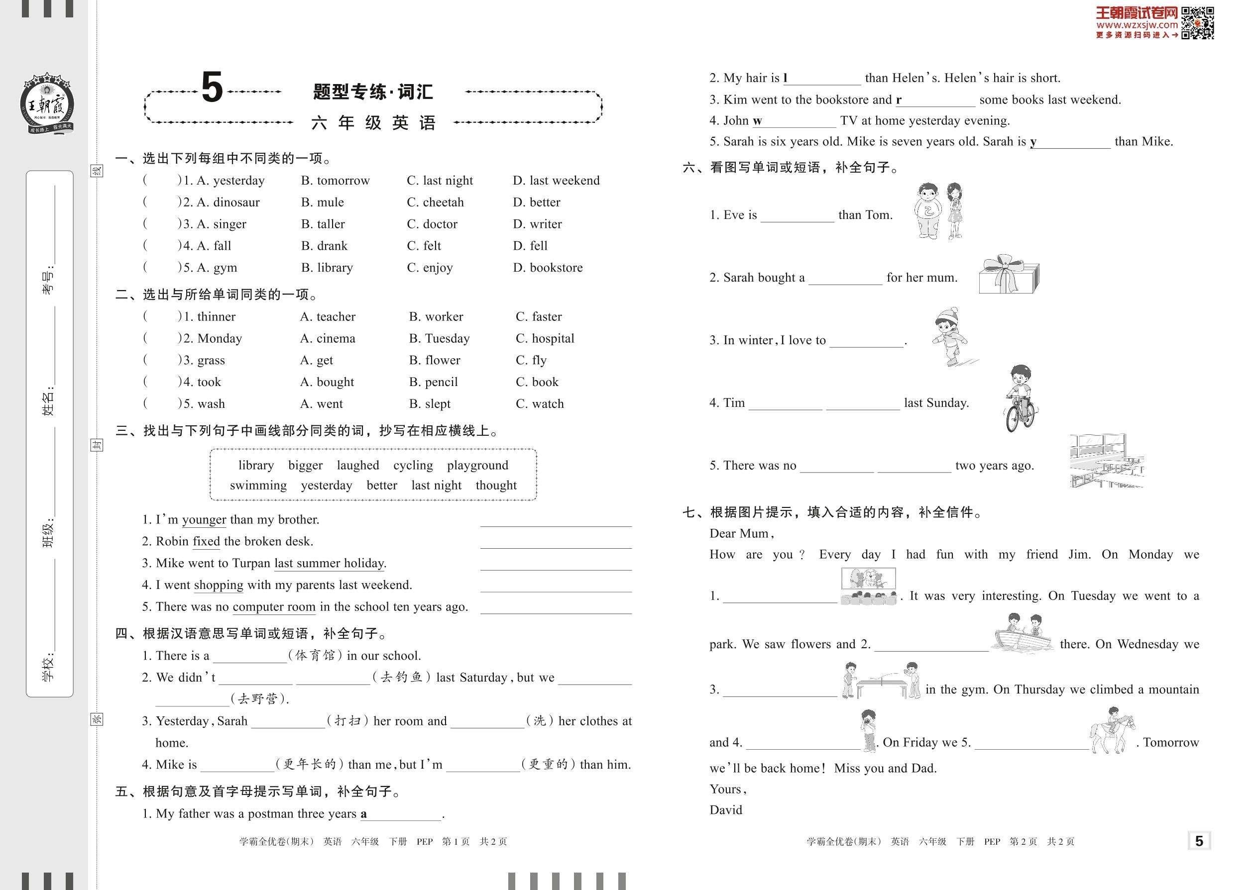 2023下册六年级英语人教PEP版 5 题型专练·词汇