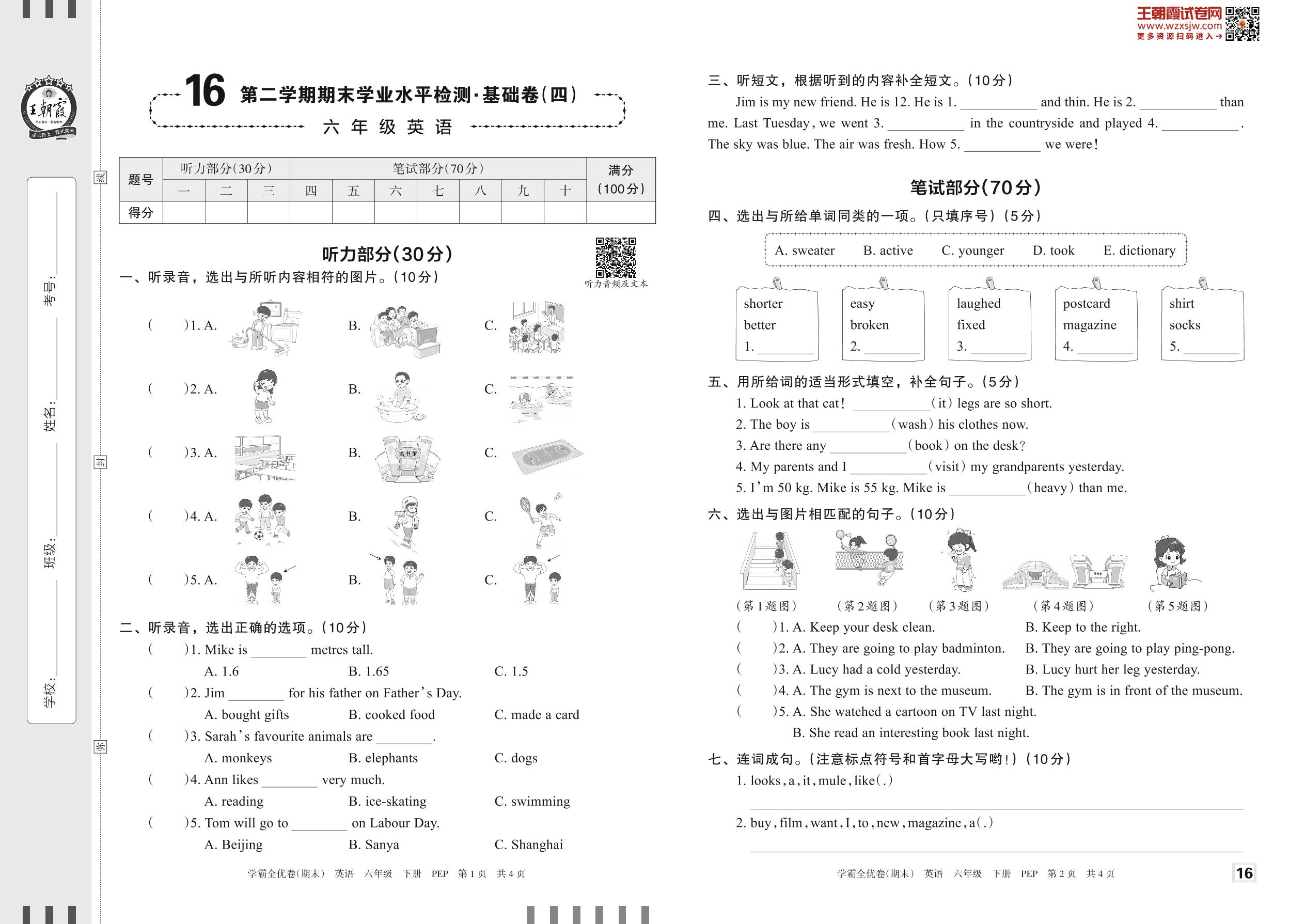 2023下册六年级英语人教PEP版 16 第二学期期末学业水平检测·基础卷(四)