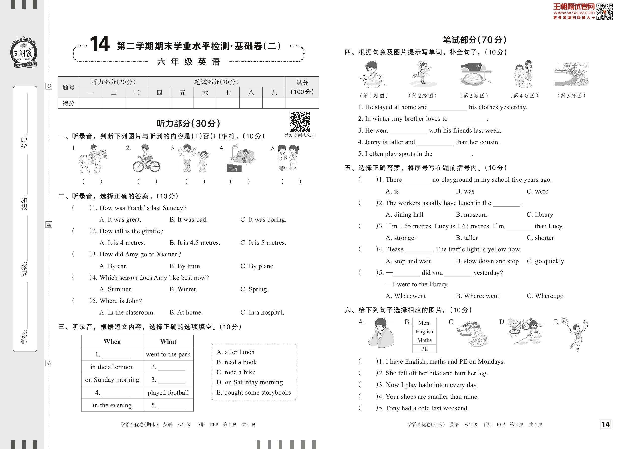 2023下册六年级英语人教PEP版 14 第二学期期末学业水平检测·基础卷(二)