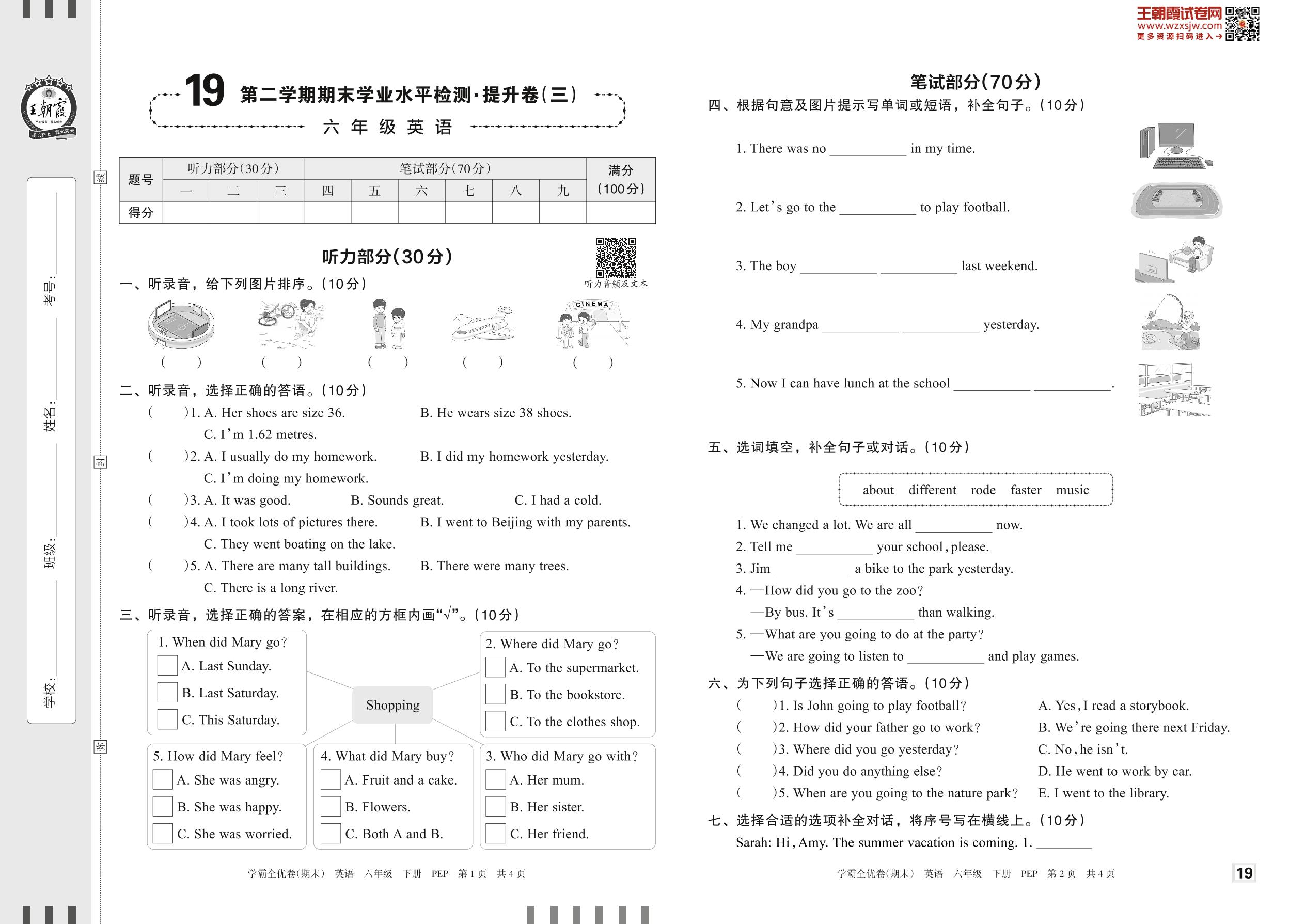 2023下册六年级英语人教PEP版 19 第二学期期末学业水平检测·提升卷(三)