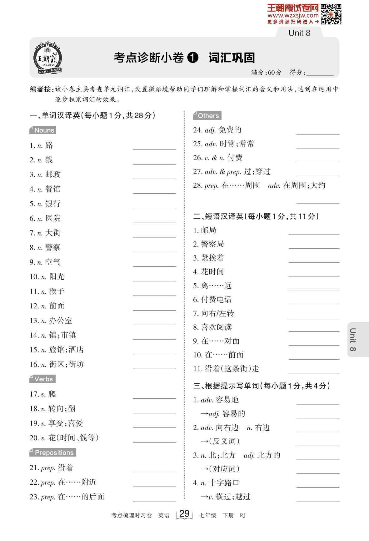 2023下册七年级英语人教版 Unit 8 考点诊断小卷1 词汇巩固_R230220091932680