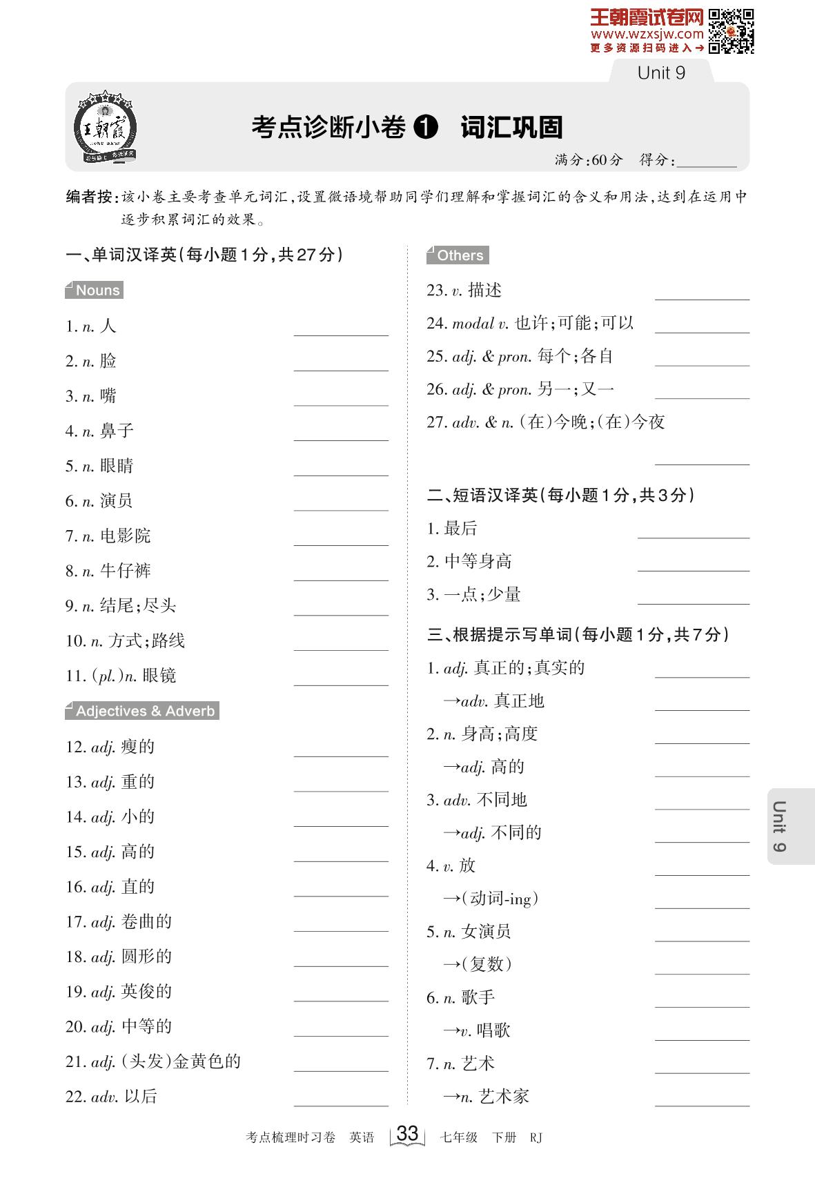 2023下册七年级英语人教版 Unit 9 考点诊断小卷1 词汇巩固_R230220091932793