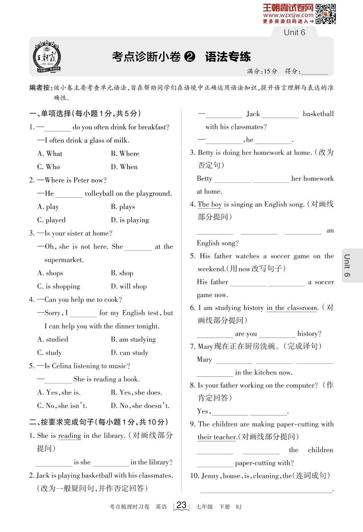 2023下册七年级英语人教版 Unit 6 考点诊断小卷2 语法专练_R230220091933831