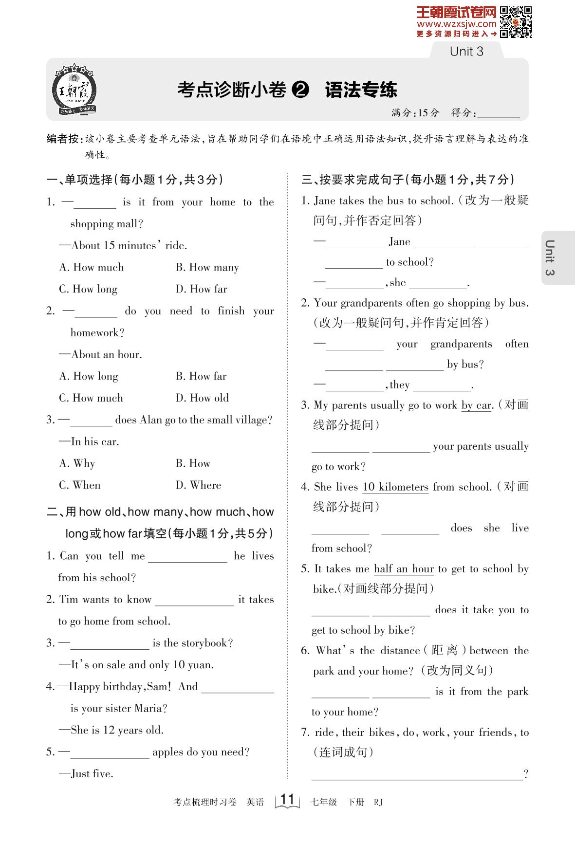 2023下册七年级英语人教版 Unit 3 考点诊断小卷2 语法专练_R230220091934173