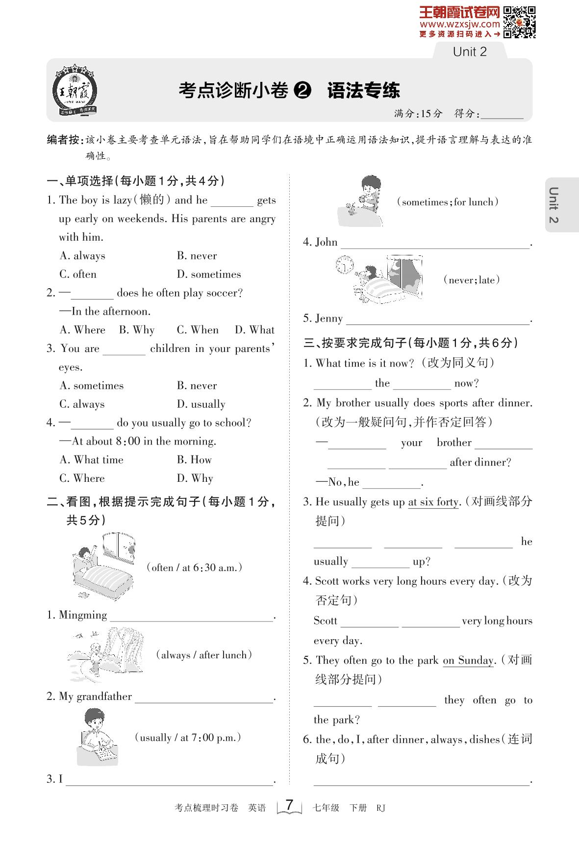 2023下册七年级英语人教版 Unit 2 考点诊断小卷2 语法专练_R230220091934242
