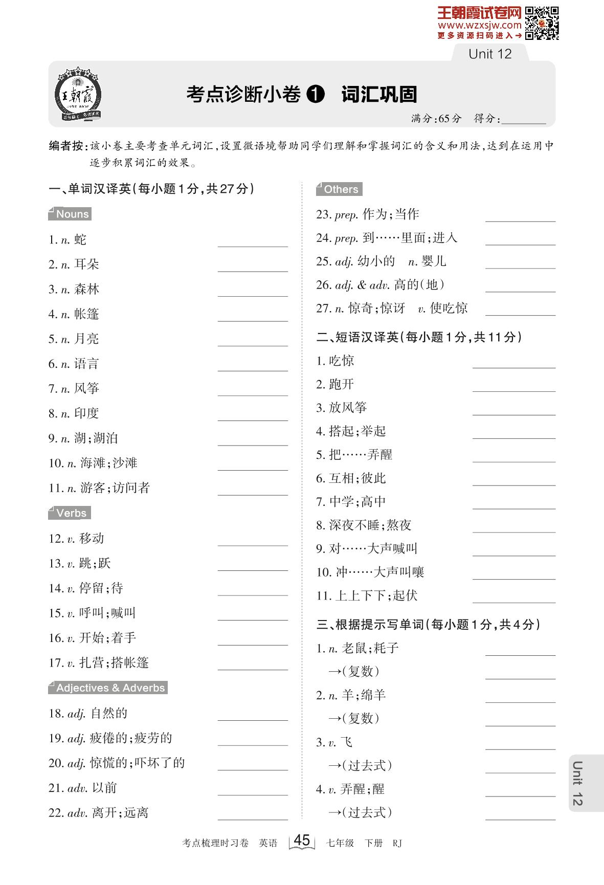 2023下册七年级英语人教版 Unit 12 考点诊断小卷1 词汇巩固_R230220091935689