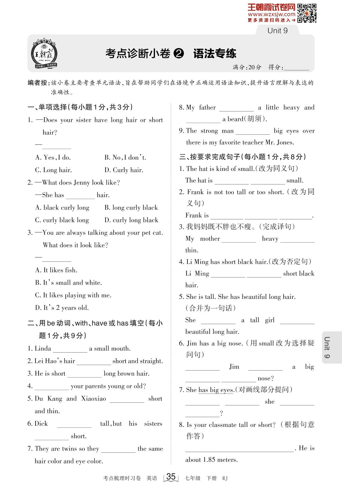2023下册七年级英语人教版 Unit 9 考点诊断小卷2 语法专练_R230220091936673