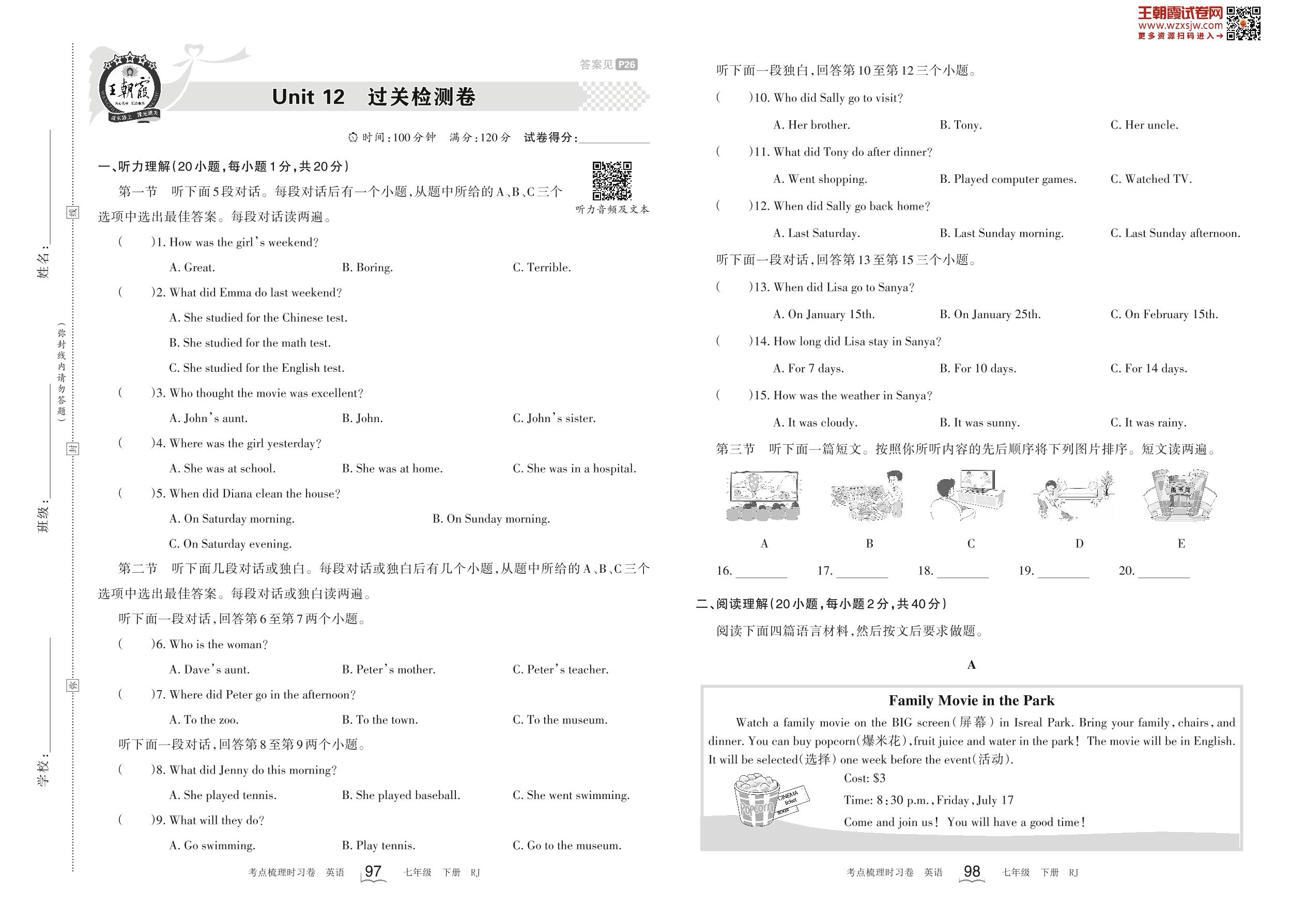 2023下册七年级英语人教版 Unit 12 过关检测卷_R230220091937353