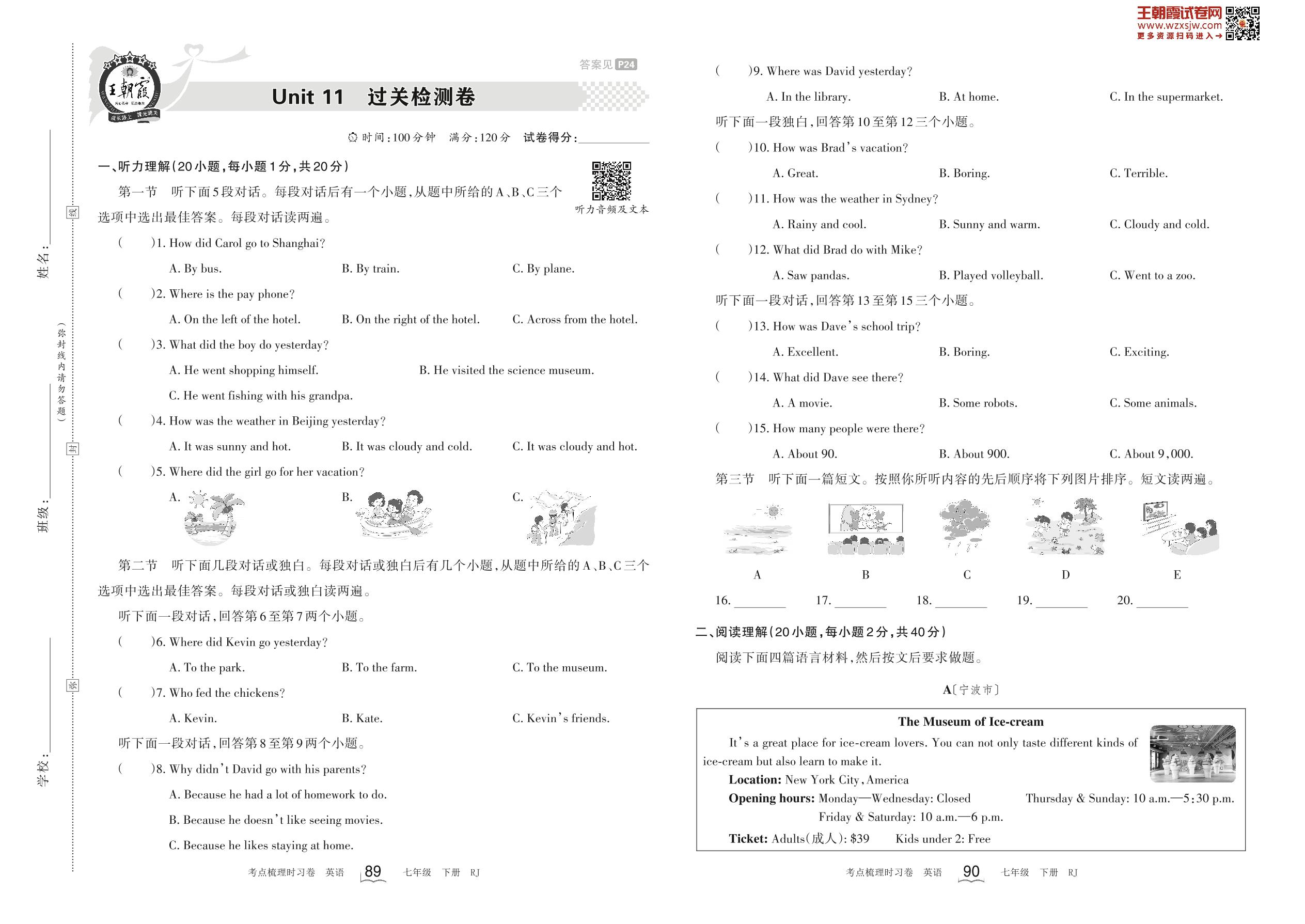 七年级英语人教版下册单元卷