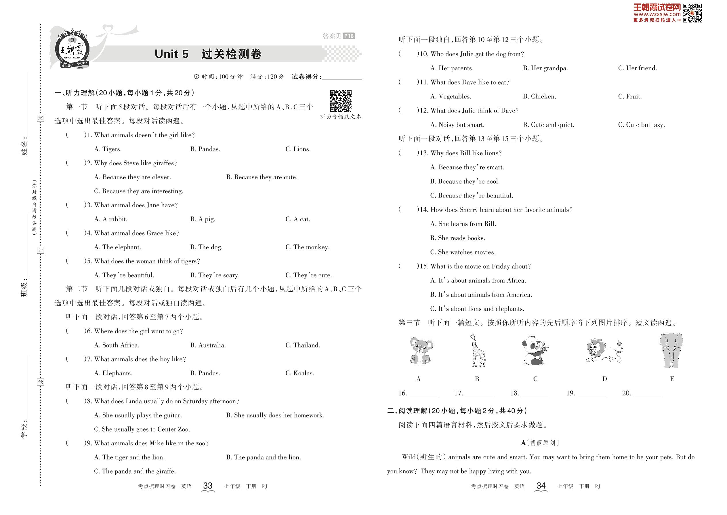 2023下册七年级英语人教版 Unit 5 过关检测卷_R230220091937989