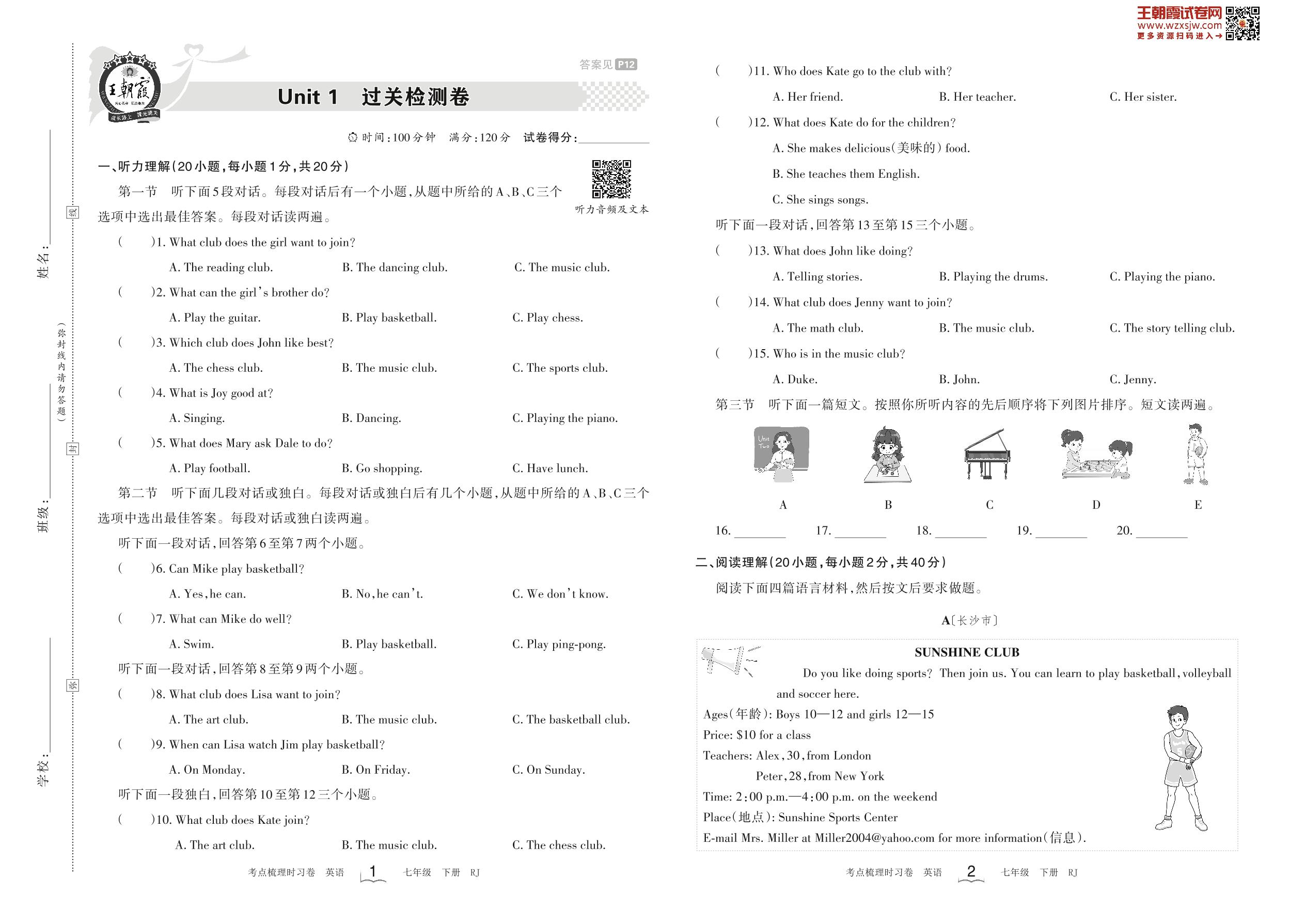 七年级英语人教版下册单元卷